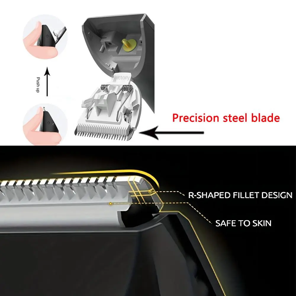 ăDurable High-Power Motoră: The high-quality copper motor of the hair trimmer not only provides strong power for efficient hair cutting but also ensures long-lasting performance, making it a reliable addition to your grooming kit.