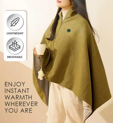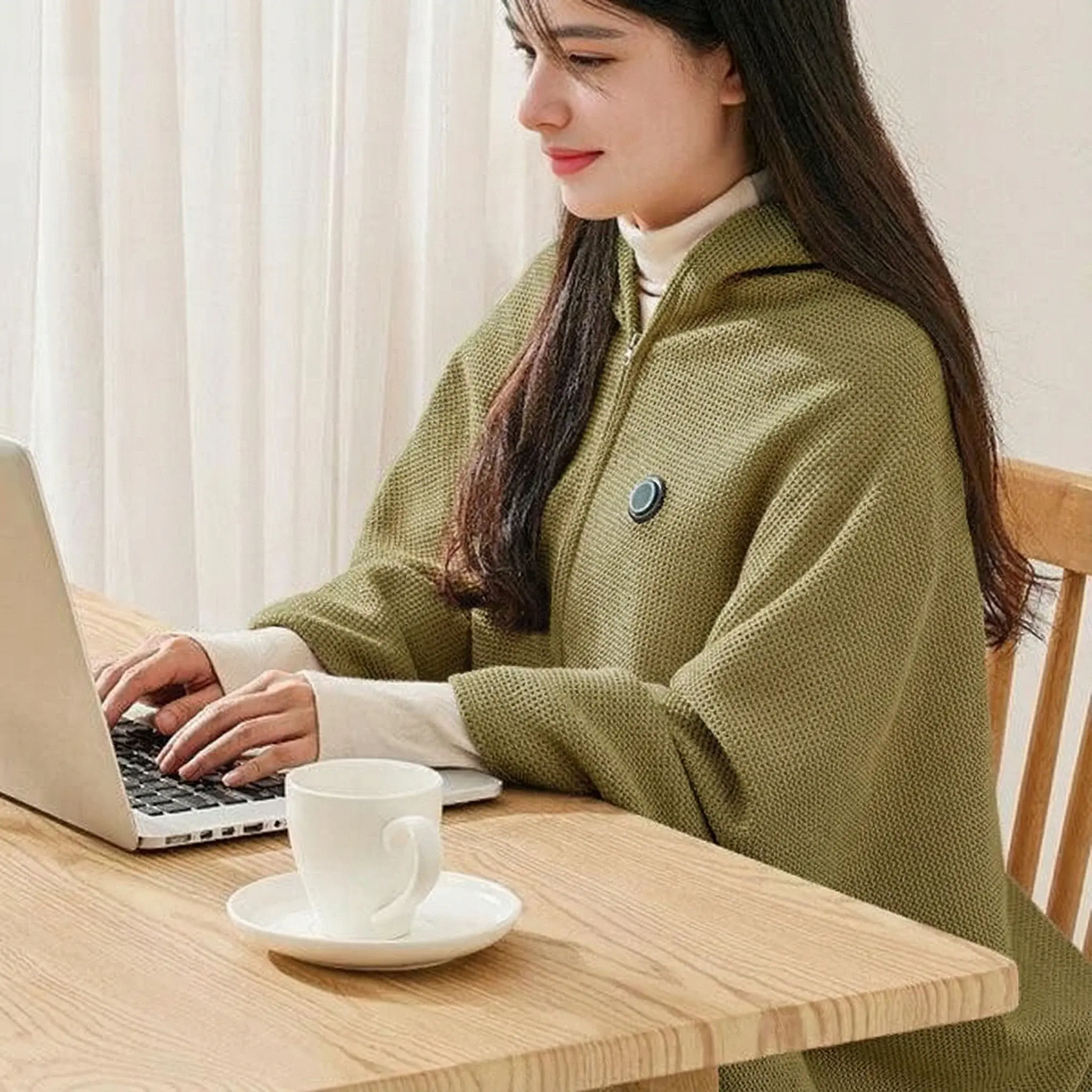 Experience comfort with this wearable heated blanket. It functions as both a cozy heated shawl and a full-size electric blanket (59.0*31.5 inch). The zippered design keeps it in place, offering warmth for relaxing at home or enjoying outdoor activities. 🌿