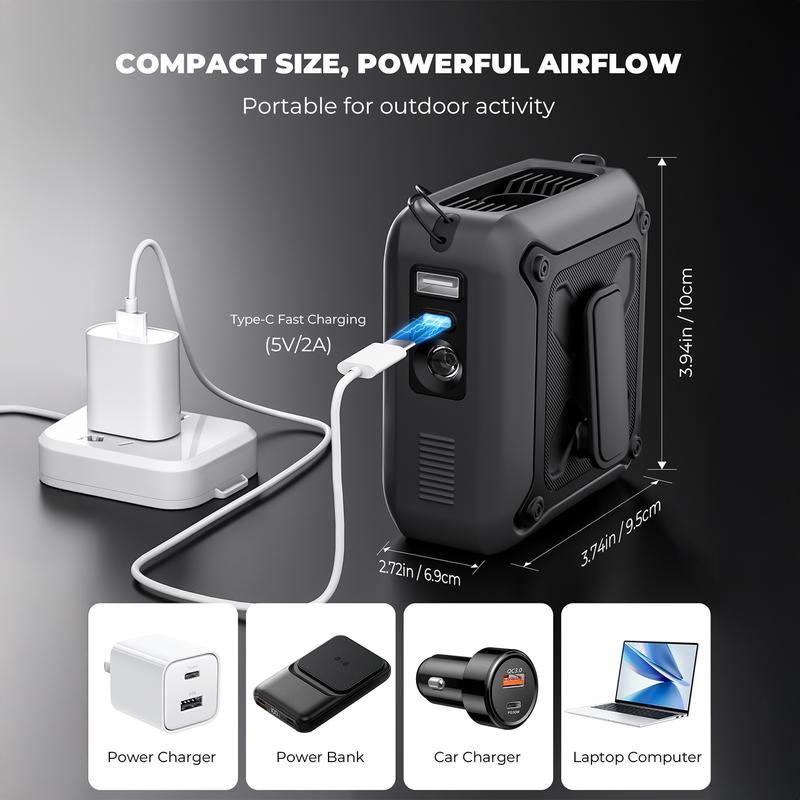 ·POWER UP ANYWHERE: This fan features both USB-C and USB-A ports, making it easy to charge your phone no matter where you are. Whether at home, in the office, or on the road, you can conveniently power up using a USB charger, laptop, computer, or car charger. Stay charged and ready for anything with this portable powerhouse!