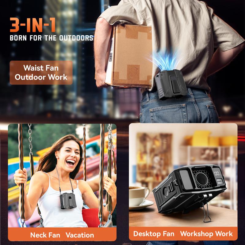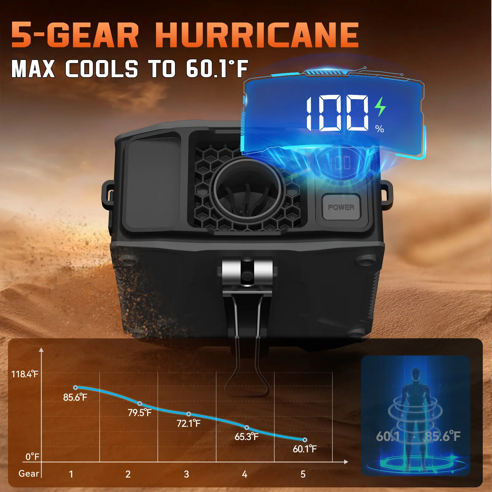 ·【Stay Cool All Day Long】: From summer festivals to long work shifts, this portable clip on waist cooling fan provides customizable airflow with 5 adjustable speeds and an incredible runtime of up to 24 hours.