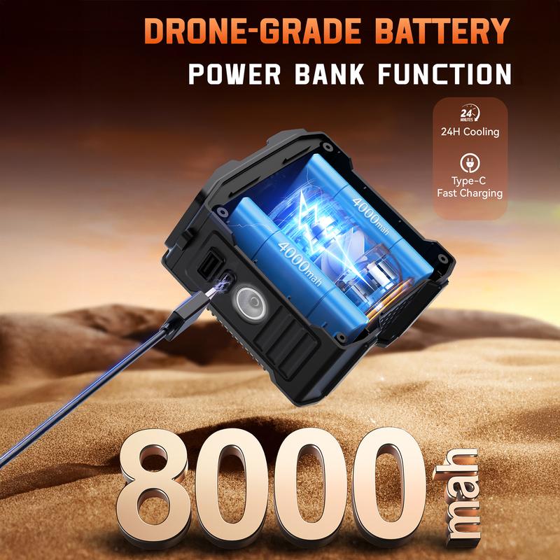 ·【Convenient Charging on the Go】: With its built-in power bank function, this portable cooling travel fan keeps your devices charged while keeping you refreshed, perfect for camping trips and busy days out.