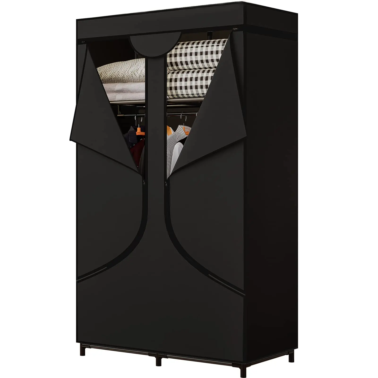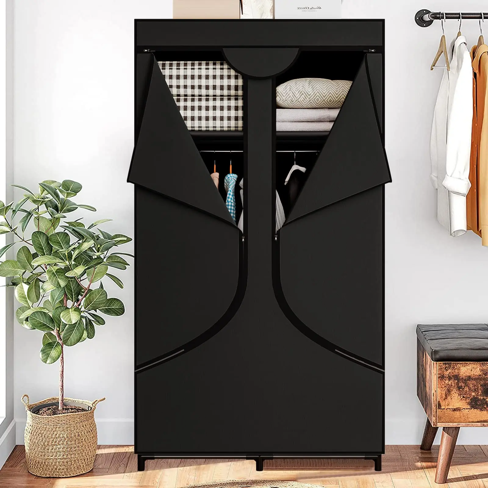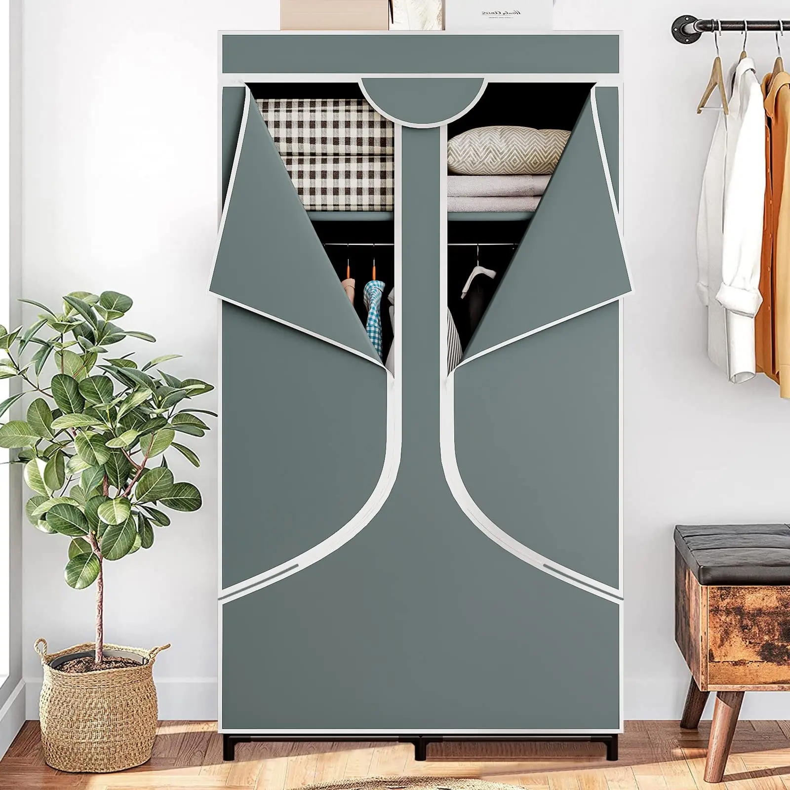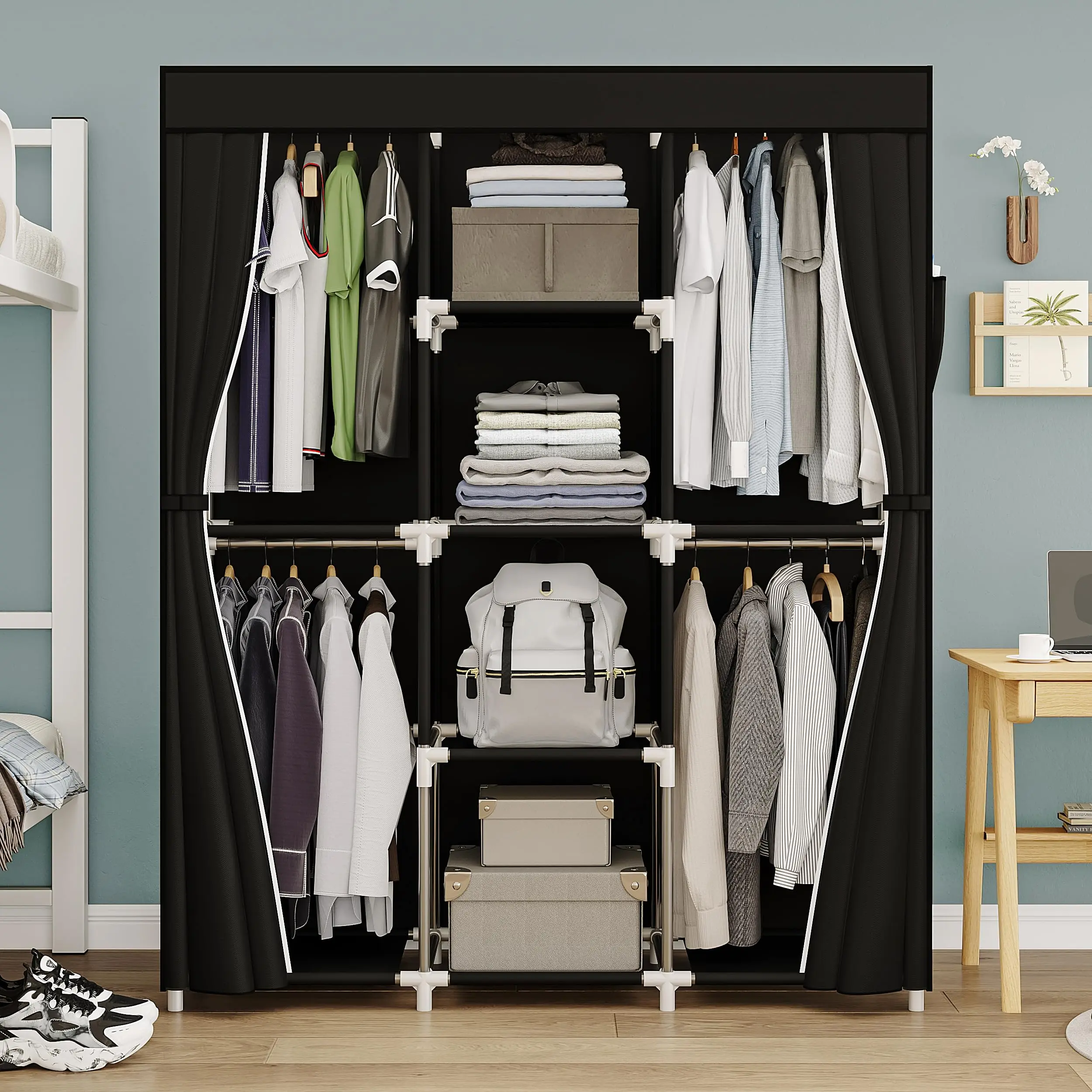 ·Adjustable cloth wardrobe. Each compartment can be freely adjusted according to your storage needs. The middle layer of cloth can be removed to hang longer clothes. The clothes are separated and stored, which is convenient for clothing selection, saving time and solving your troubles.