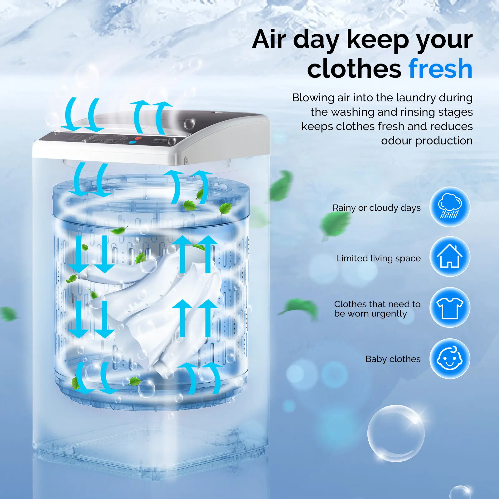 Just received this washer and so far I'm loving it. I've done several loads trying out the different settings and how they function. I do like the air dry function as it helps with the drying time.It does not dry your clothing but helps remove moisture, this helps to dry faster