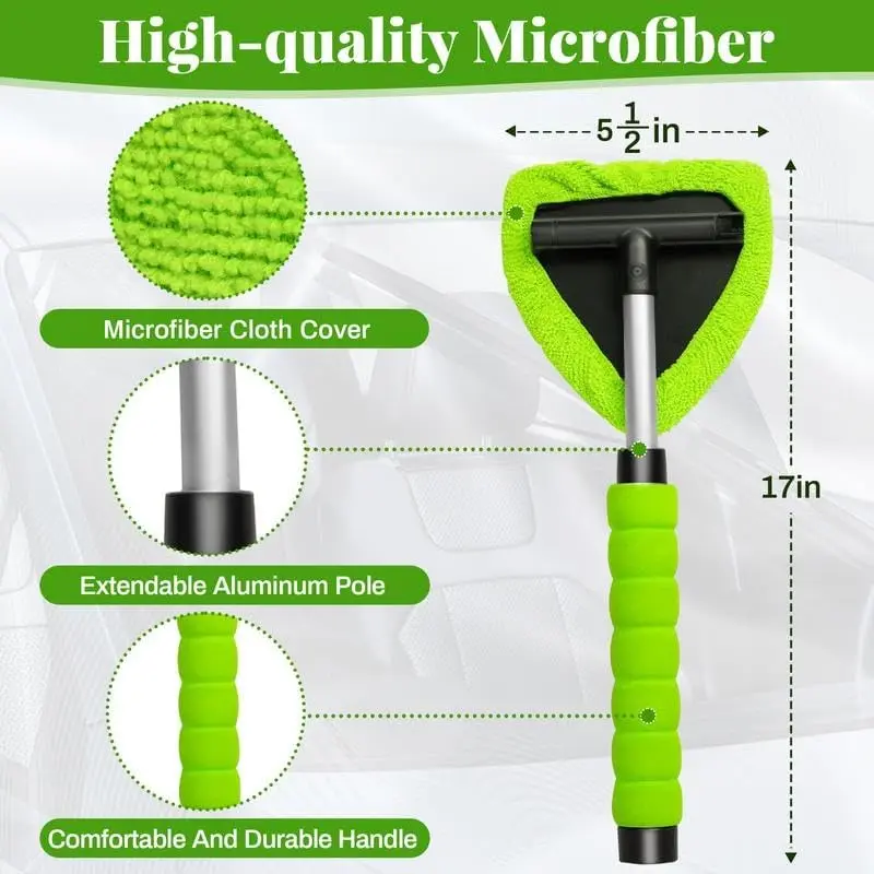 Built with a sturdy, anti-slip extendable handle and equipped with three reusable microfiber cleaning cloths for efficient dirt removal. Lightweight Sleek design and soft grip make it easy to handle from the driver seat&reduce operating noise—great for quick touch-ups between windshield wipers or as part of a complete car detailing kit.
