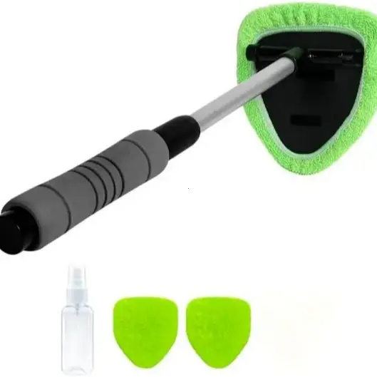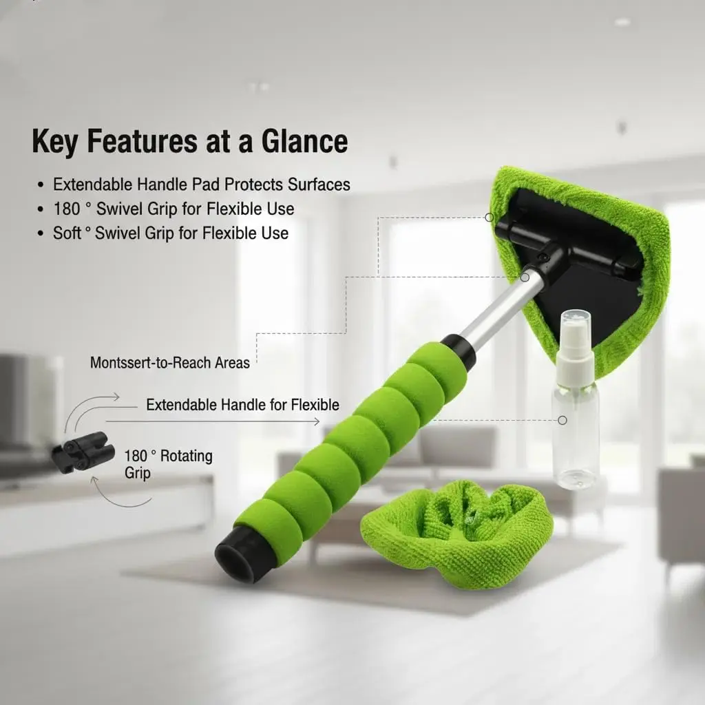 Portable Windshield Cleaner Tool – Car Interior Window Cleaning Kit with Extendable Handle & 3 Microfiber Pads, Auto Wiper Inside Windshield Brush Defogging Brush for Car & Home Windows - Auto Cleaning Accessories!