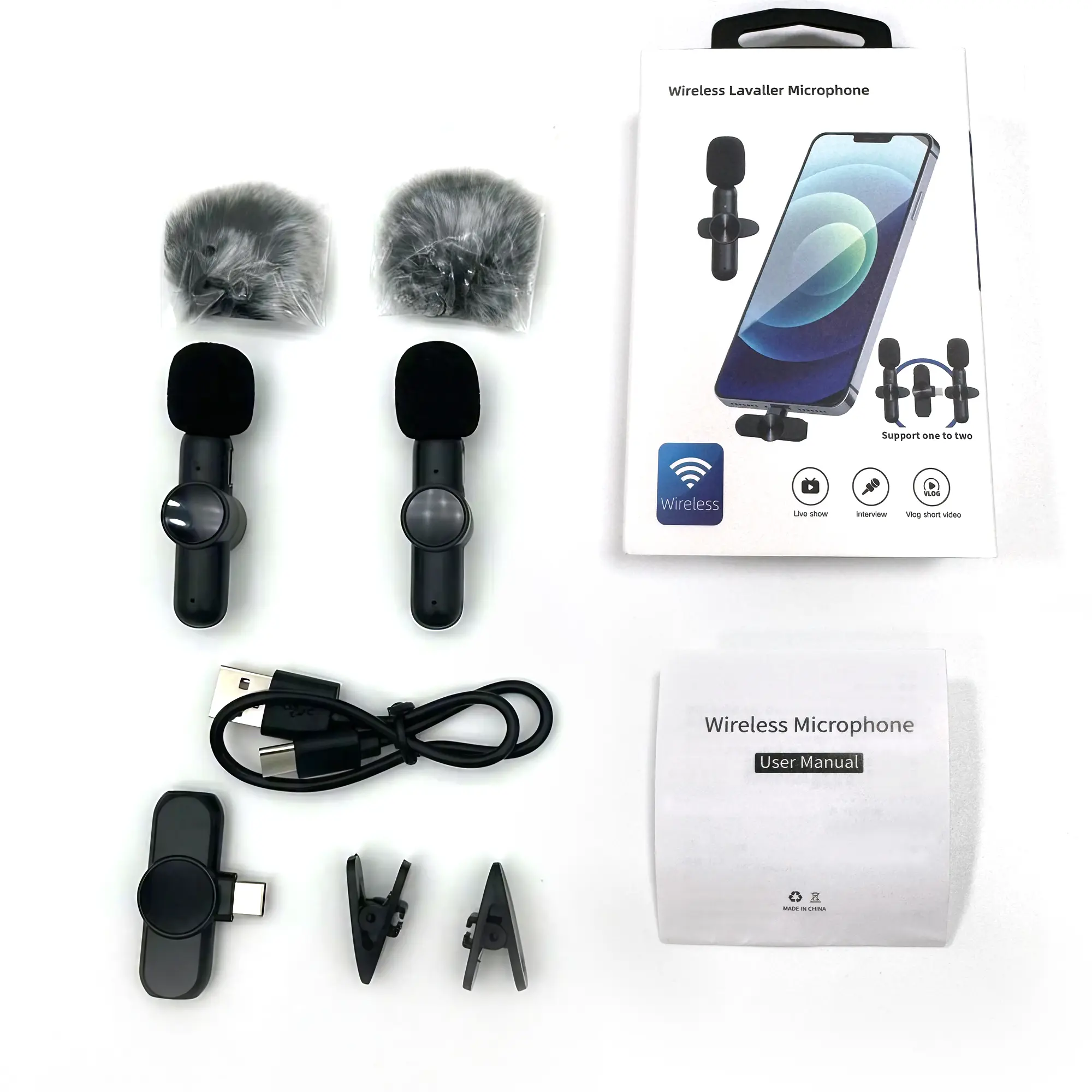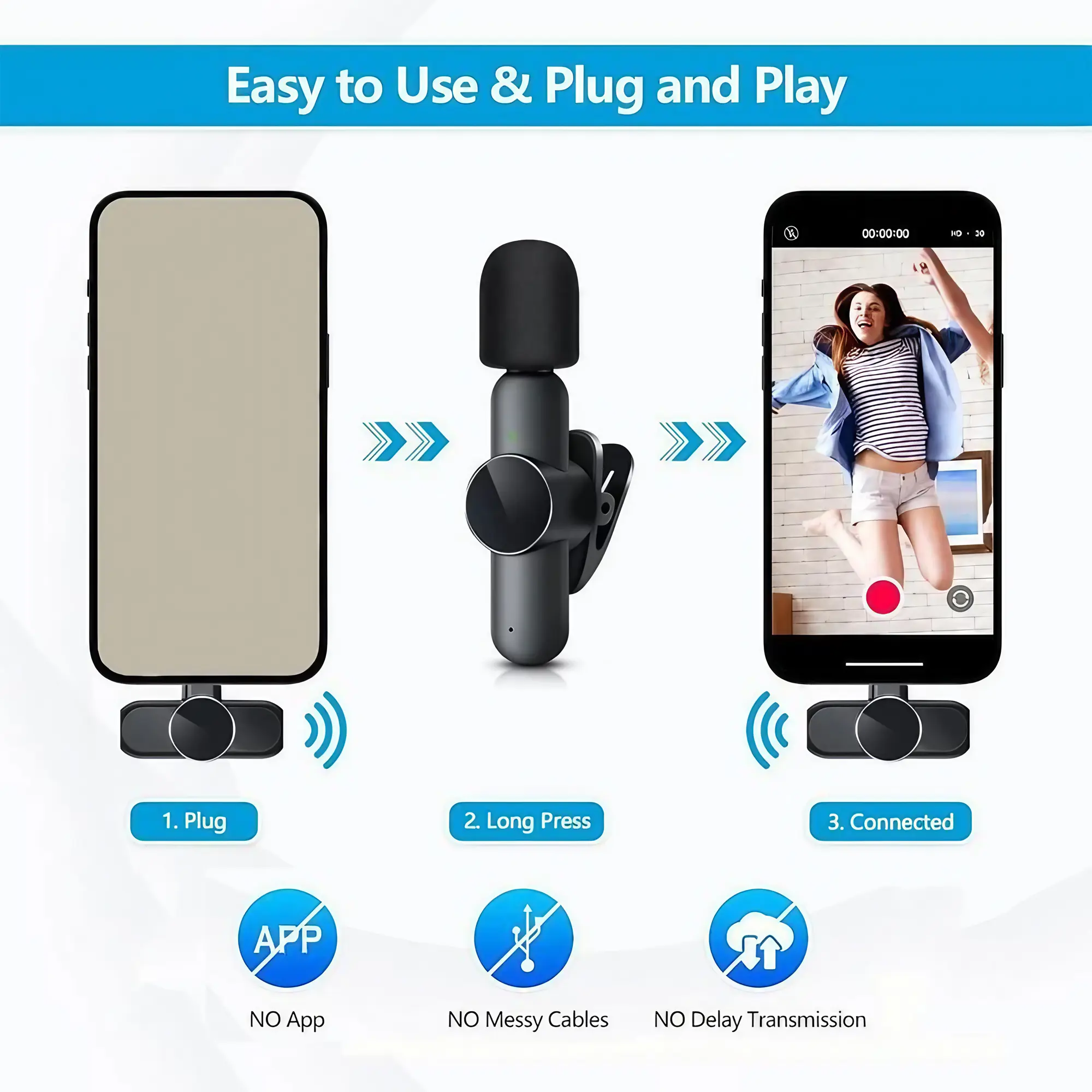 Wireless Lavalier Microphone: Plug & Play, Noise Cancelling for Smartphone Live Streaming, Vlogging, Interview Recording. Professional HD Audio, Portable Clip-on Mic for Content Creation, Social Media Videos.