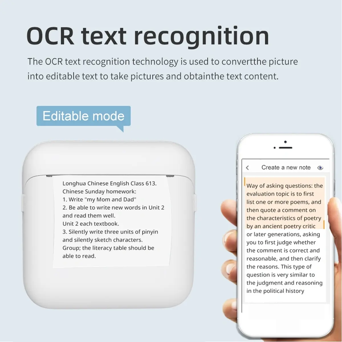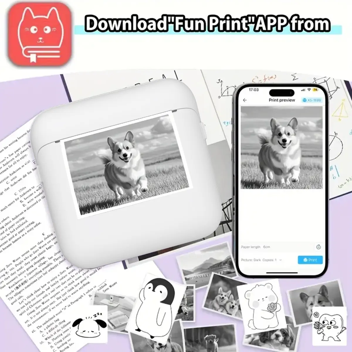 Portable Wireless Mini Printer, Thermal Inkless Printer, Compatible with iOS and Android, Ideal for Office and Home Use