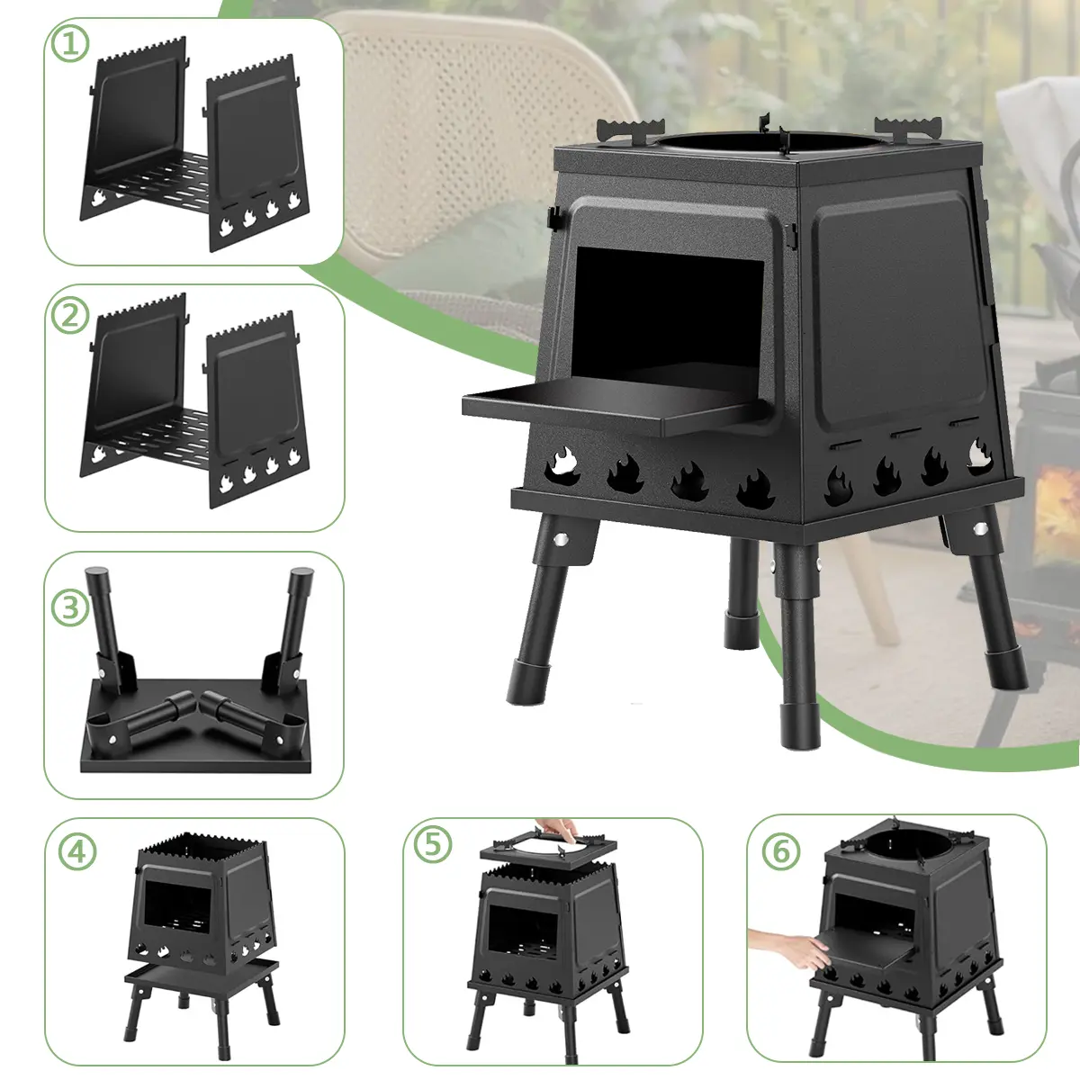 ·The stove is easy to transport and set up at campsites, BBQs, or outdoor gatherings. Its efficient burning design provides optimal airflow and steady, high-heat output. 🌞