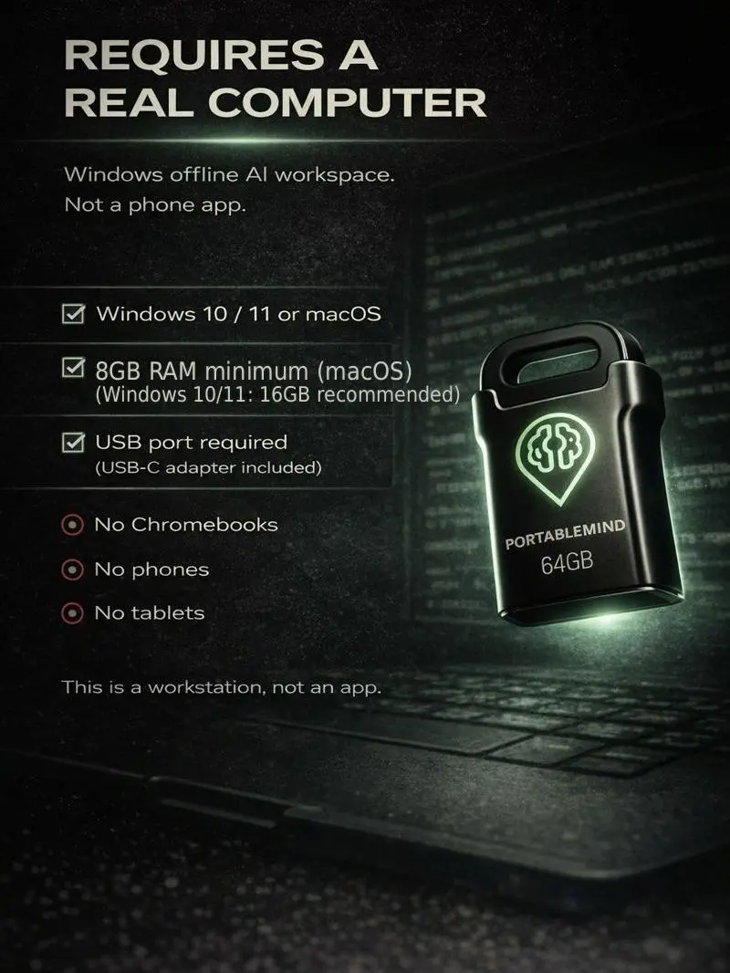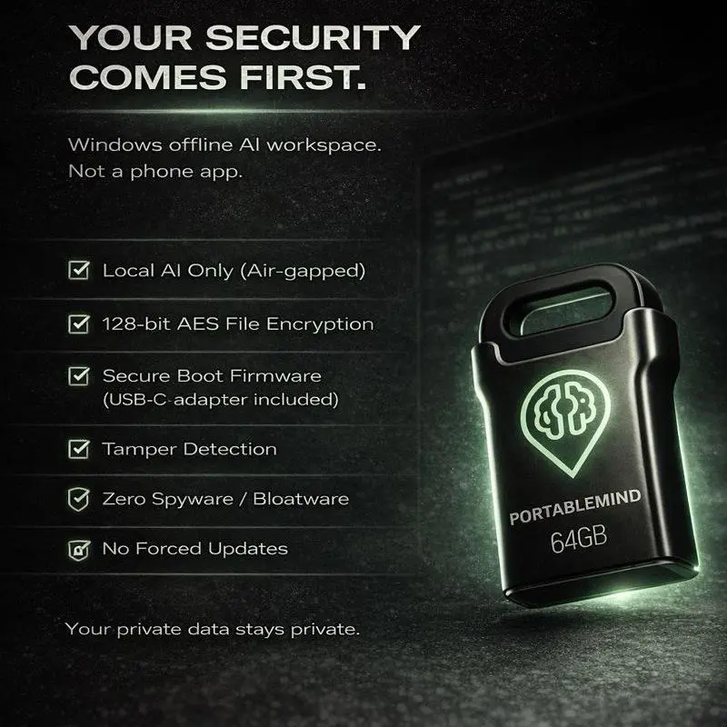 PortableMind isn’t “another app.” It’s a hardened, plug-and-play AI workspace that lives on the USB: