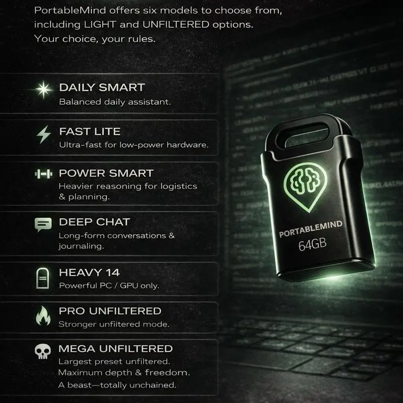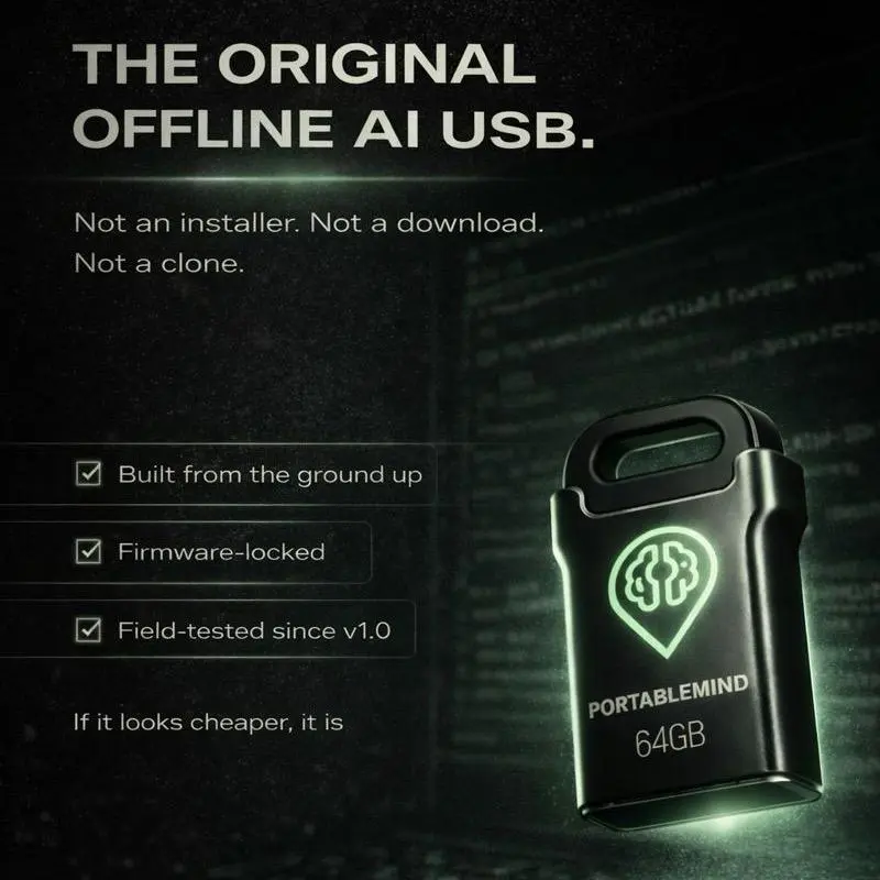 PortableMind USB (Firmware 1.4) = Offline AI that runs on YOUR computer, not the cloud.