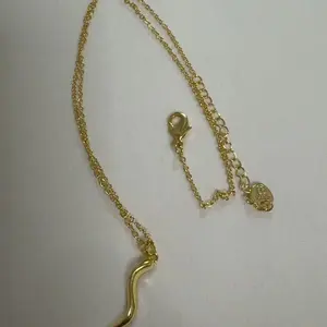 The necklace was a good length. Color, shape, chain everything was cute. It doesn’t get rusty at all, stays golden forever. It came very quickly, too.