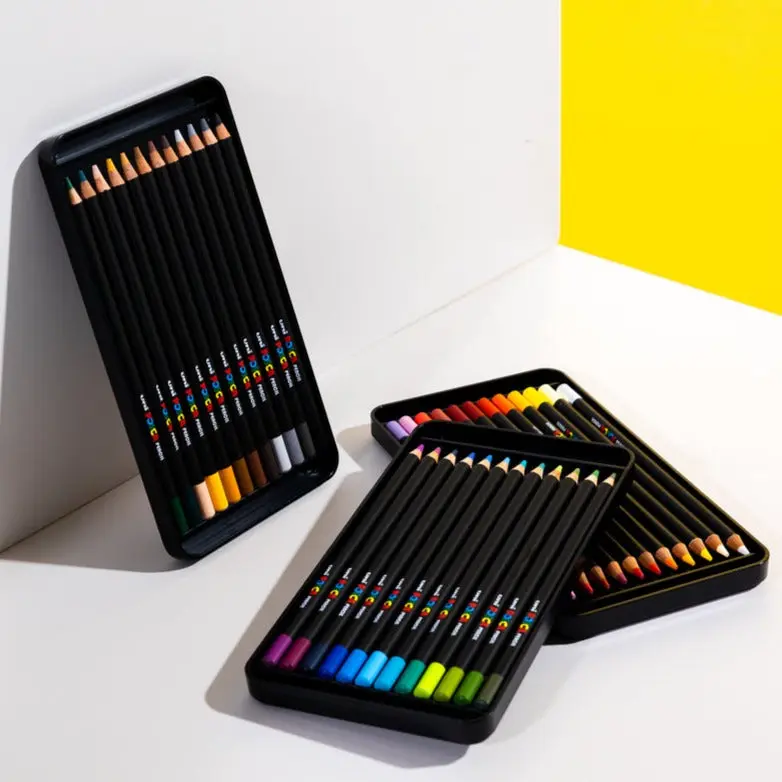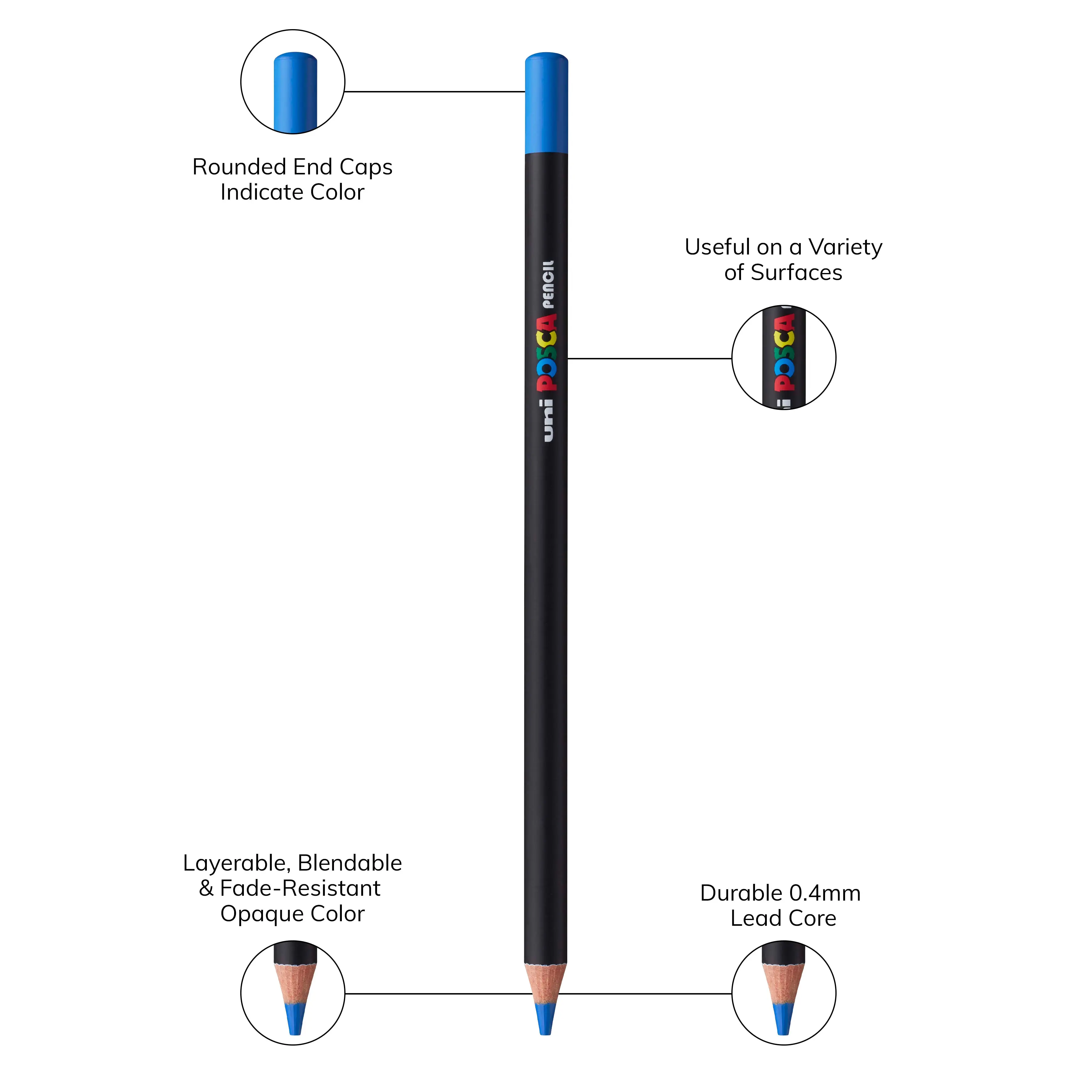 Posca oil based colored pencils are sensational. Colors are vibrant. Blending is easy. Pencils work on top of other media such as watercolor or acrylic markers.