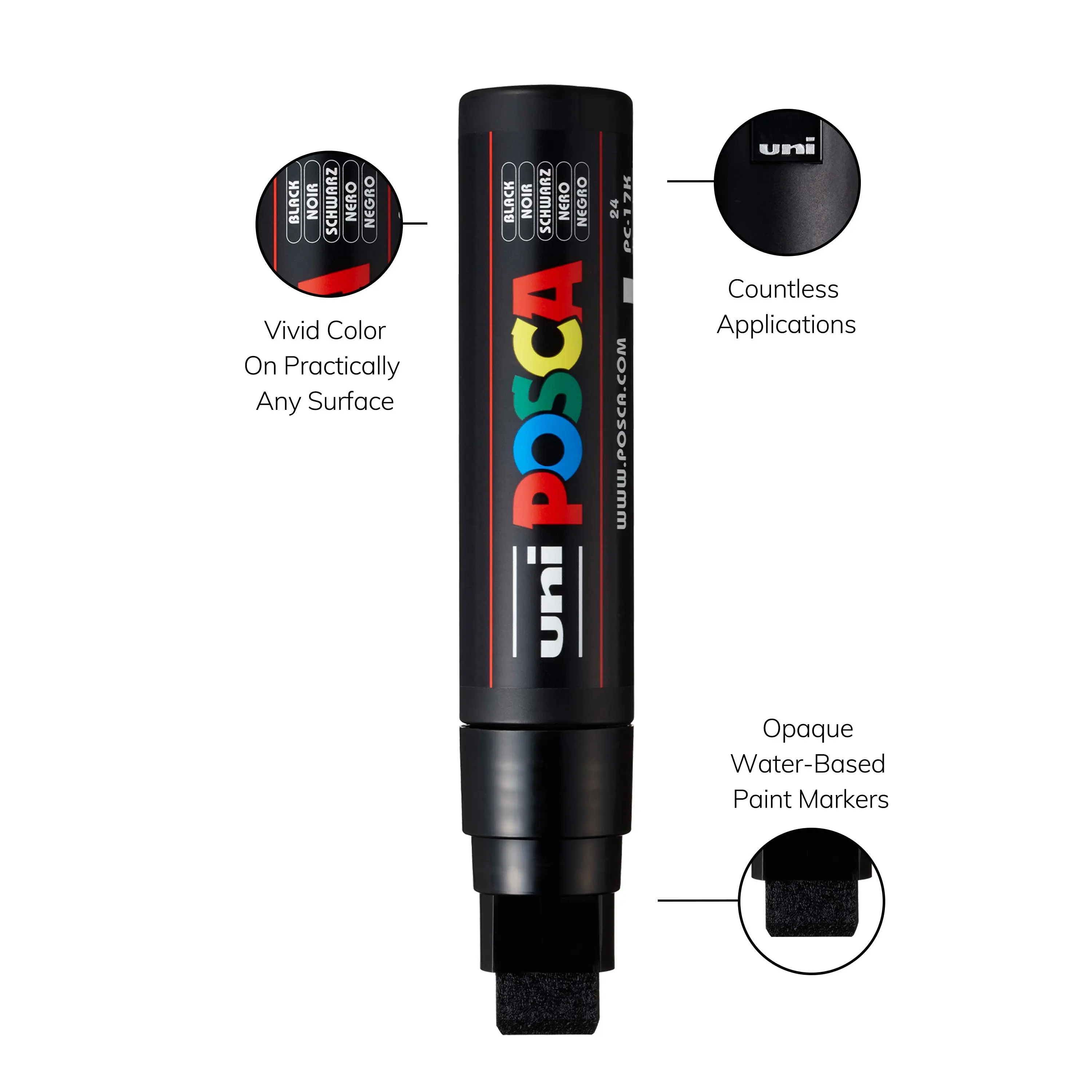 Unlock Your Creative Potential with the Expanded POSCA® Family: Introducing the uni POSCA® 8 tip set! Perfect Your Artistry in Graffiti, Fine Art, DIY Projects, and More - No Limits, Just Possibilities! Elevate your artistic expressions with the versatile and dynamic uni POSCA® 8 tip set! This secret weapon empowers you to create stunning masterpieces in graffiti, fine art, street art, illustration, and customization. Explore new horizons and unleash your inner artist with POSCA®! Designed for Ultimate Comfort and Precision: The uni POSCA® 8 tip set features a semi-rigid structure for a unique grip and exceptional control. Whether you prefer an upright or inverted approach, this marker offers a wide range of effects to bring your vision to life. Unleash Your Creativity on Over 50 Surfaces: From wood to glass, metal to plastic, ceramic to leather, the uni POSCA® 8 tip set water-based paint markers excel on various surfaces! Plus, the bullet tip ensures unmatched control and precision, making your projects stand out. Quick-Drying Paint Markers for All Projects: Enjoy the convenience of indoor and outdoor use with these fast-drying paint markers. Let your creativity flourish without delays! ACMI-Certified Non-Toxic Paint: The uni POSCA® 8 tip set uses non-toxic paint, certified by ACMI. It's mixable, layer-able, and dilatable, giving you endless possibilities for your artwork. Get ready to take your artistic journey to new heights with the uni POSCA® 8 tip set! Grab yours now and elevate your creative expression!