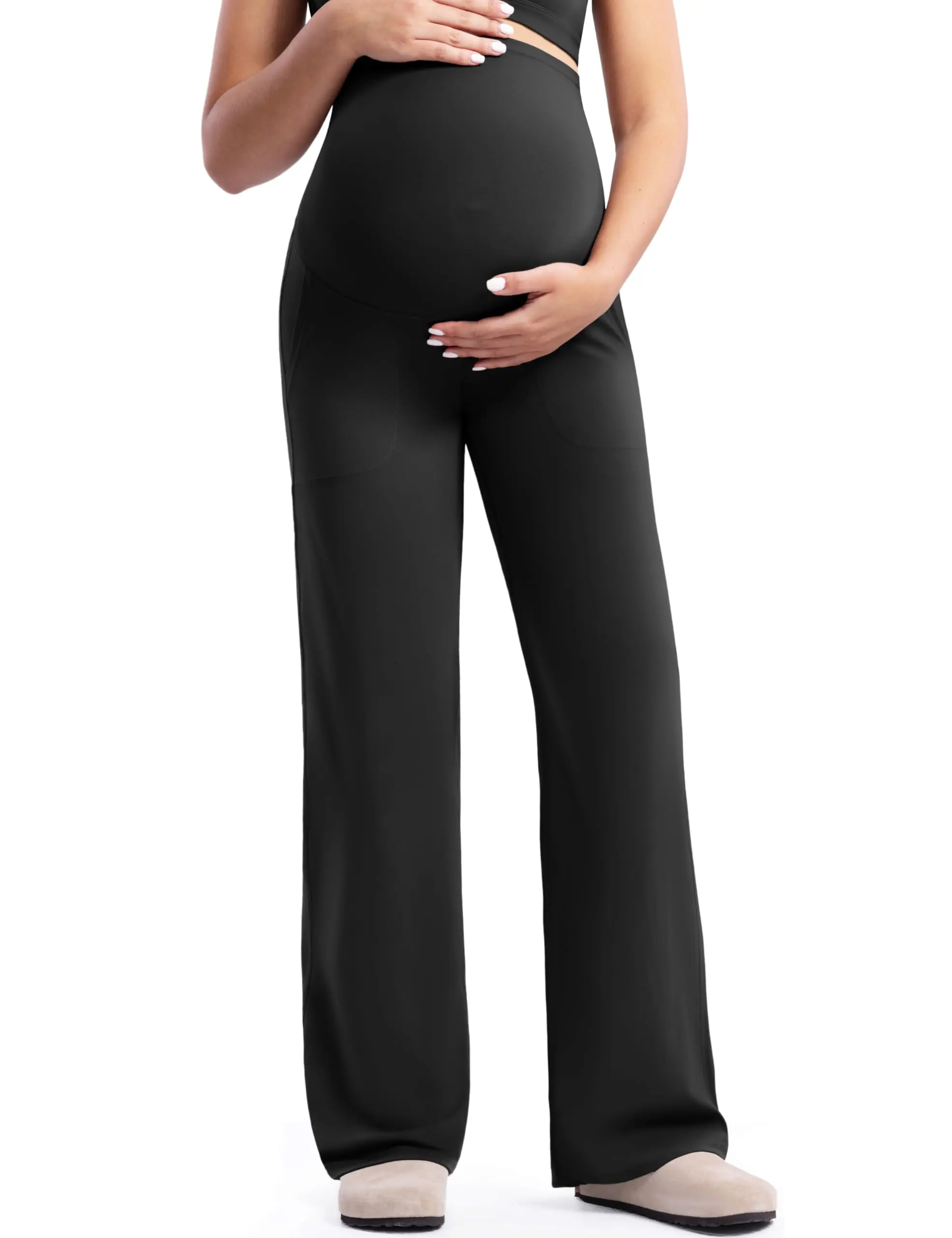 Spacious Silhouette Meets Versatile: Straight cut elongates the leg line and leaves some room in the thigh and calf area for a loose, comfortable fit during pregnancy and postpartum without tightness. The high waist and U-shaped belly panel provide flexible support without sagging. Whether you're practising maternity yoga, working or lounging, these maternity pants have got you covered.