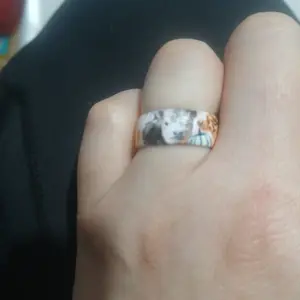 Love the design very cute,tge ring is comfortable I highly recommend this company cause if any reason u have an issue u back the product up for any reason!!