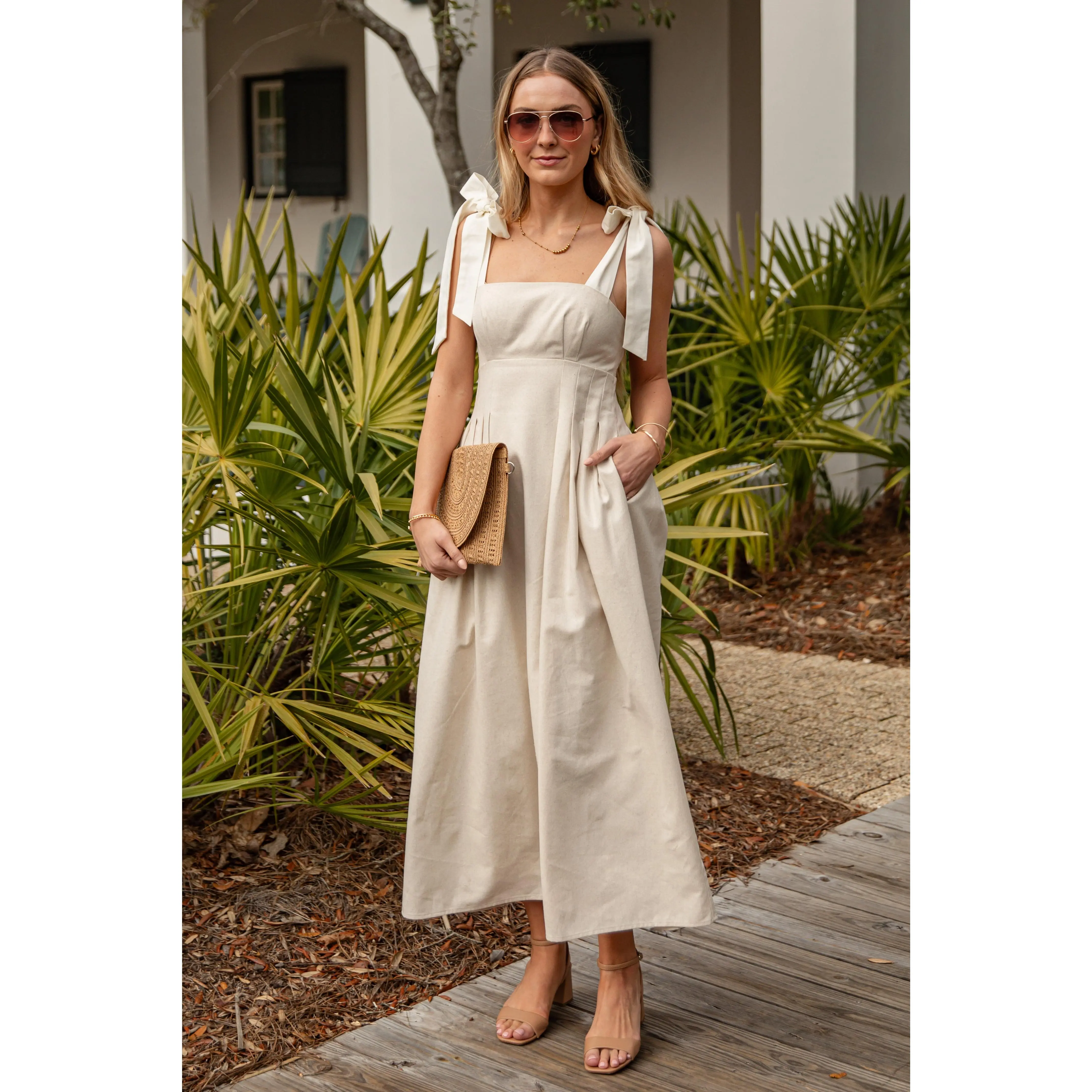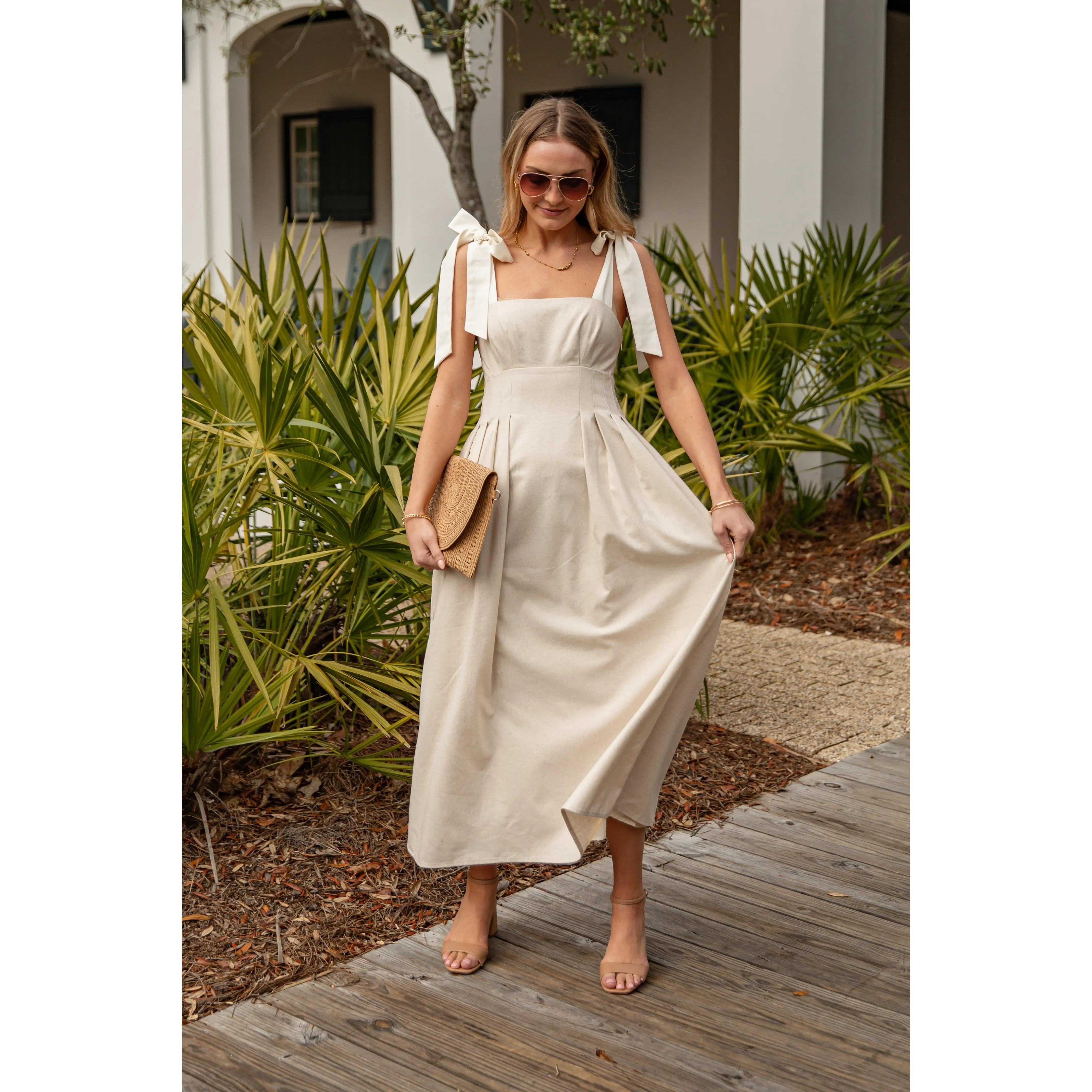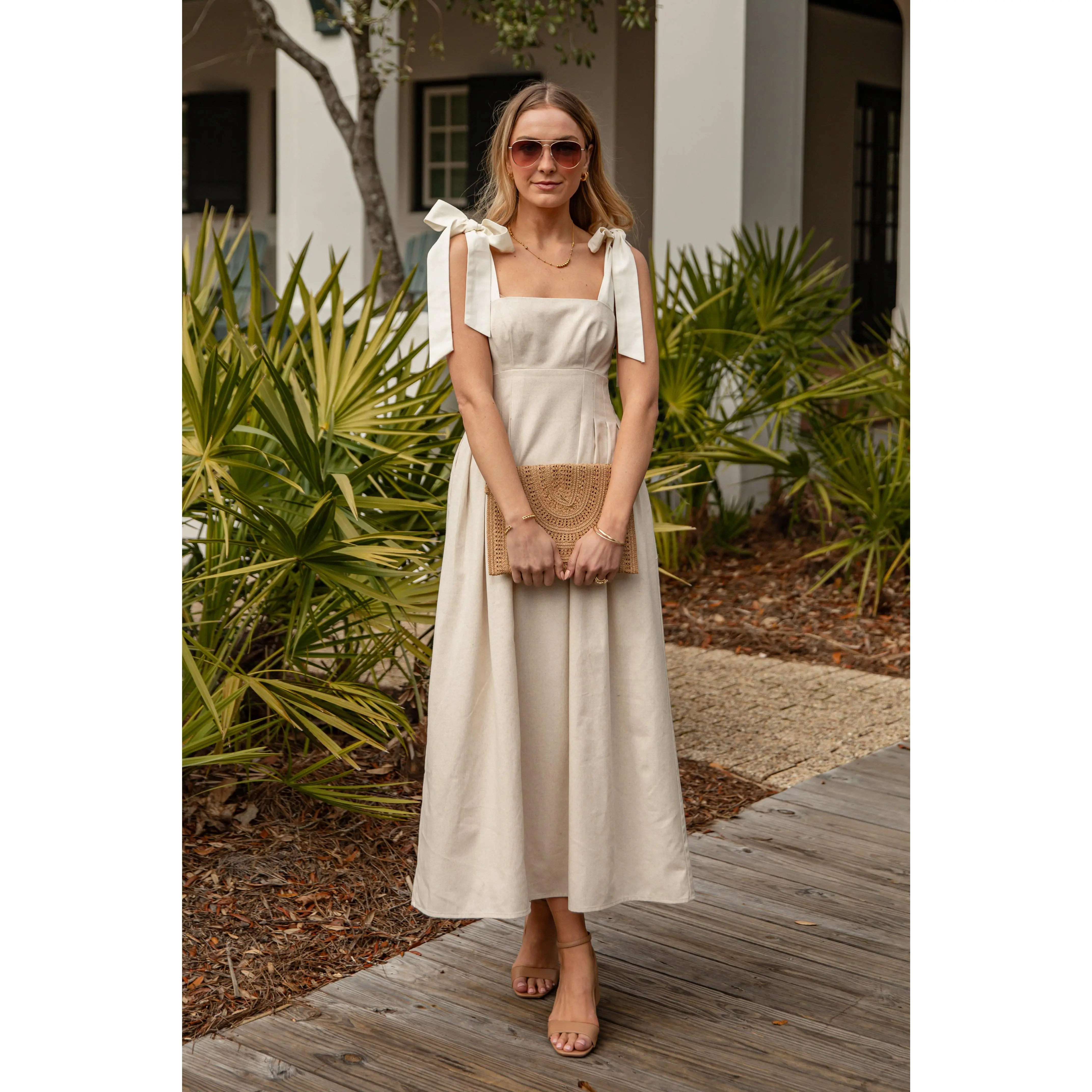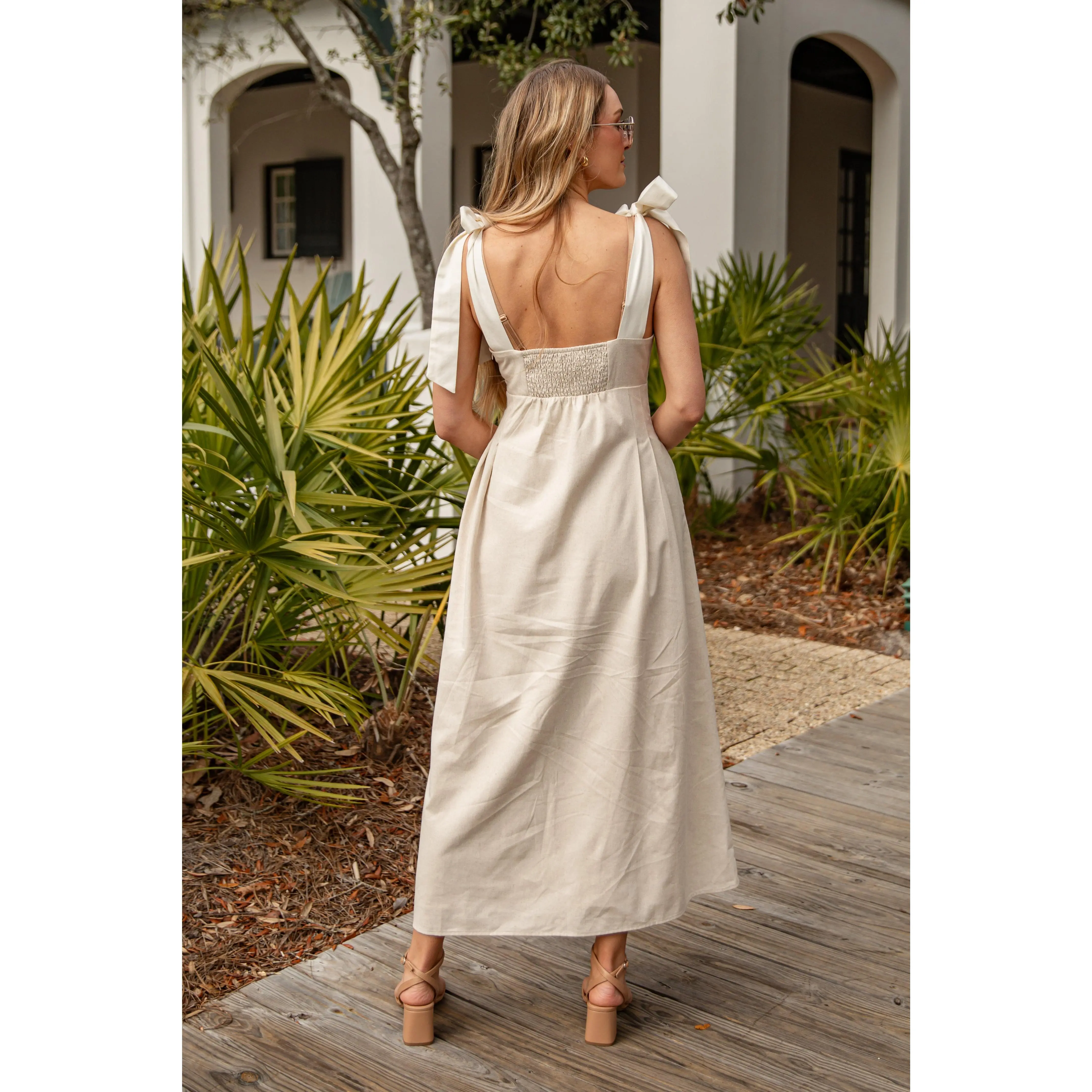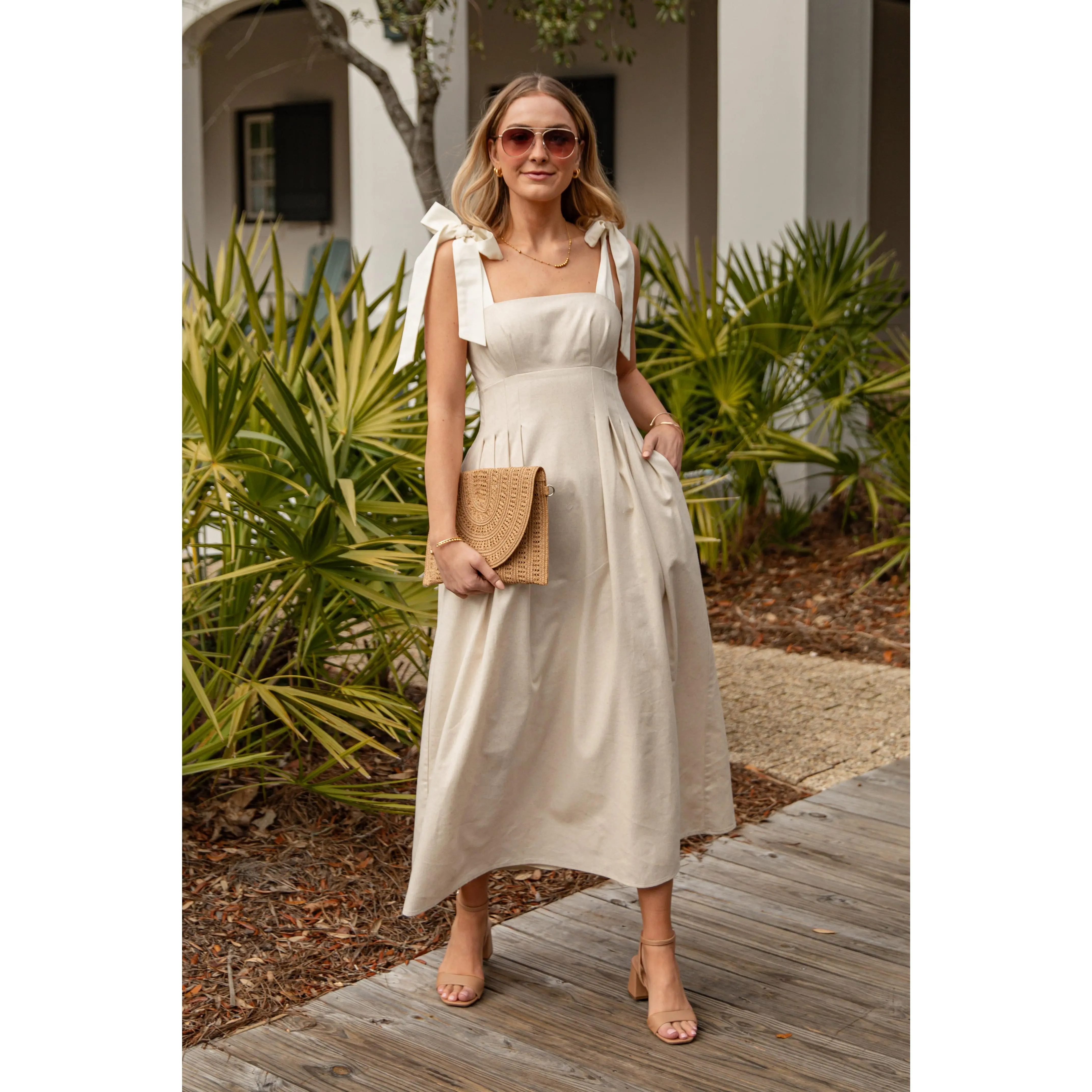 This Positano Paseo Natural Maxi Dress offers a clean, elevated silhouette with subtle detailing that enhances its timeless appeal. Designed with a flattering neckline and tailored waist, it creates a polished yet romantic finish. The neutral tone makes it endlessly versatile for bridal events, showers, or warm-weather celebrations. Pair with sandals and statement accessories for the perfect day outfit!