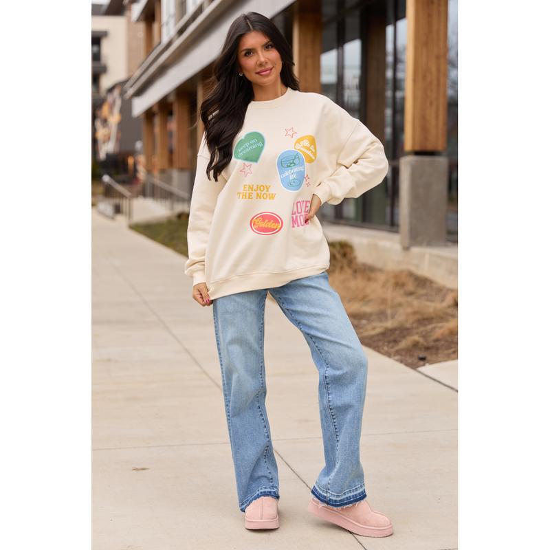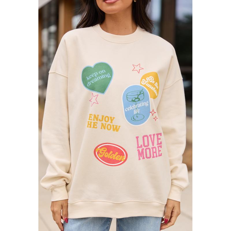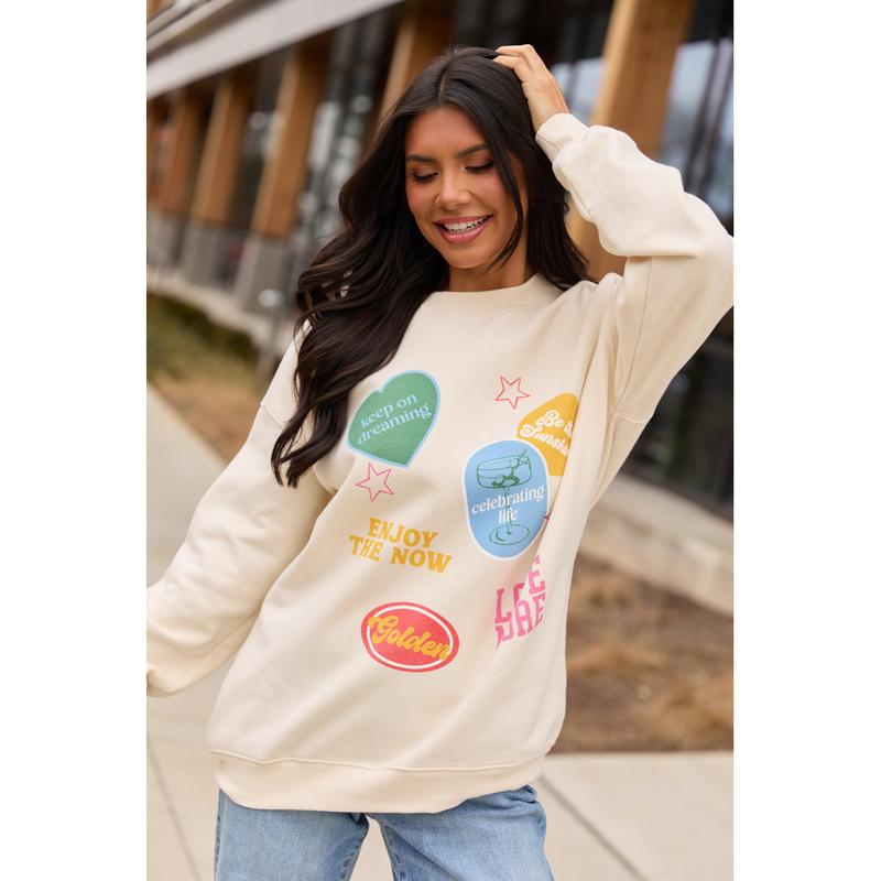Positive Stickers Cream Graphic Sweatshirt SALE