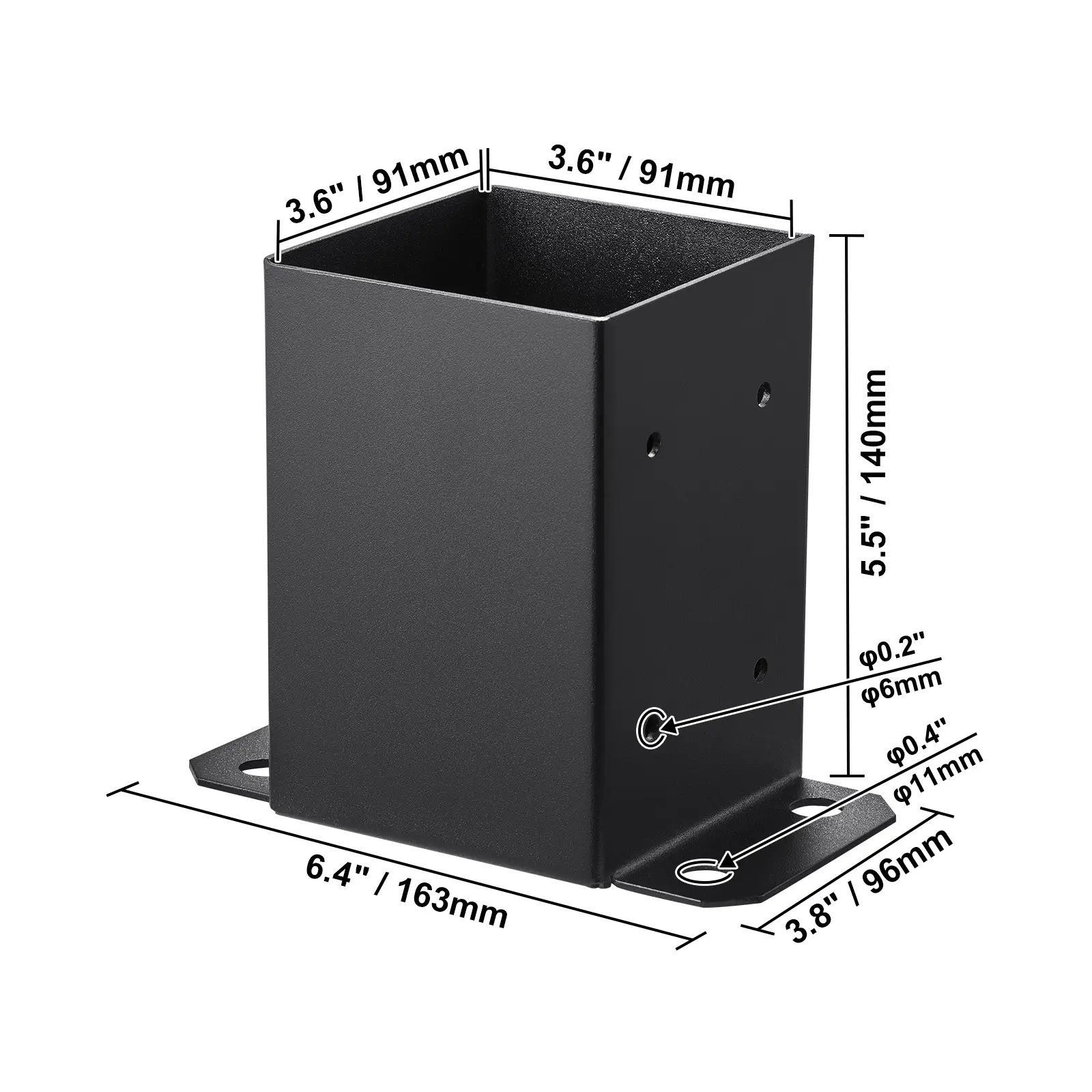 • Sturdy Support: Each individual post base measures 3.8x5.5x6.4 inches / 96x140x163mm, with a quantity of 4 pieces. The inner dimensions of the column base are 3.6x3.6 inches. Recommended for use with 3.5x3.5 inch columns, these connectors feature a full wrap structure design, providing secure and effective support without wobbling.
