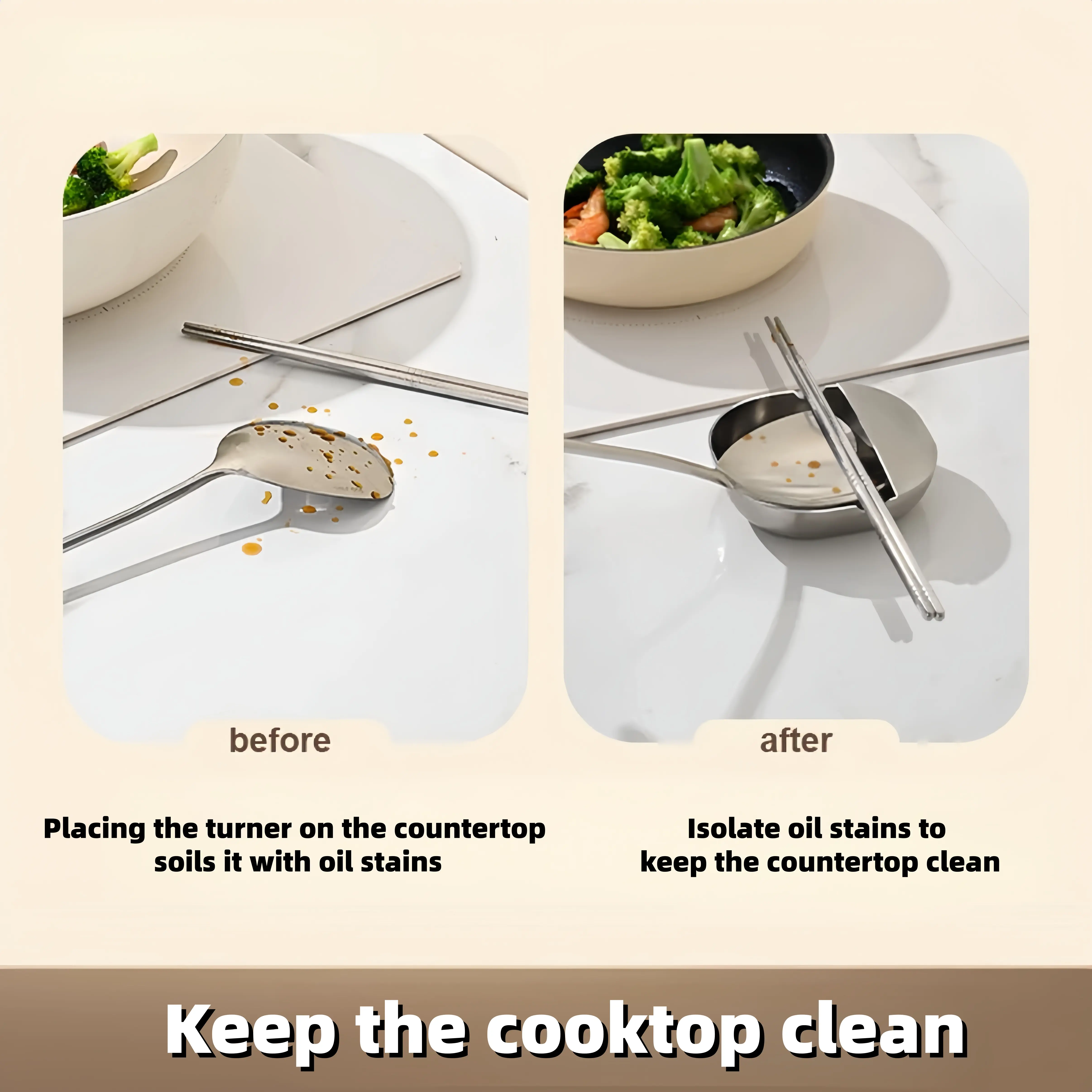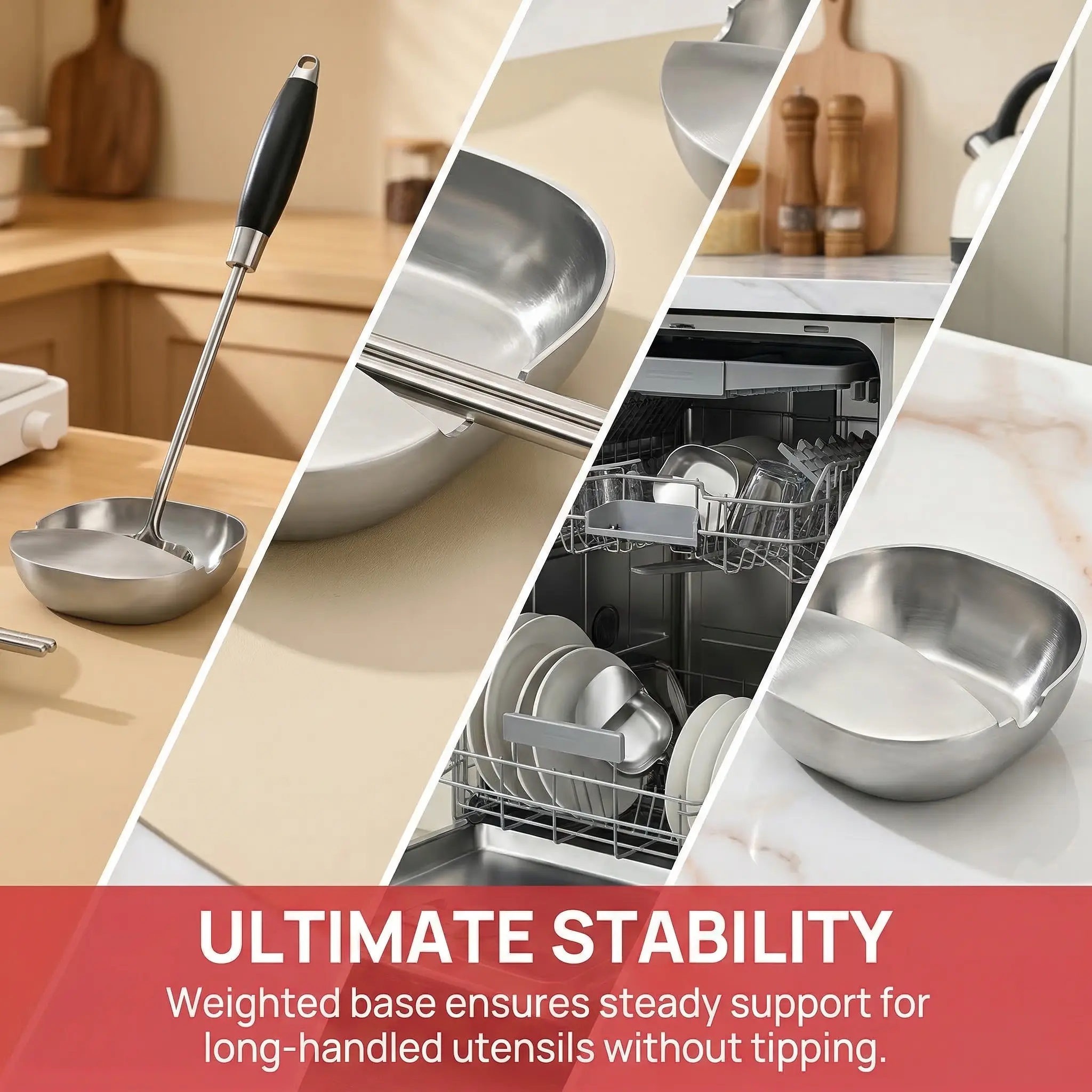 Very solid, nice design but this will not hold up a pot lid without leaning it against something. And because sitting on my stove is metal to metal, it just slid forward as soon as I tried to rest a lid on. Otherwise works great for holding messy utensils while cooking.