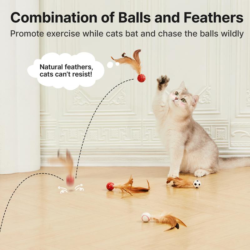 Feather Bouncy Balls for Active Play: Made from high-quality rubber, each feather ball rolls and bounces quietly, ideal for nighttime or solo play. The swaying feathers enhance excitement and make these toys irresistible things for any playful kitty.
