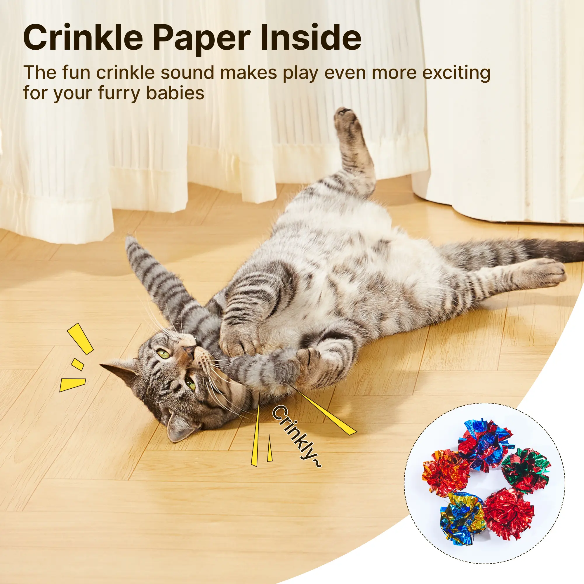 Crinkle Paper for Maximum Stimulation - The crinkle paper inside adds a fun crinkle sound, creating an irresistible combination for hours of interactive indoor play.
