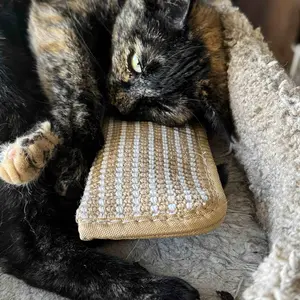 No-Shed Sisal Weave — Made with tight, no-shed fibers, this kicker is reinforced with double-stitched edges and bite-resistant fabric, making it safe and sturdy for even the most aggressive chewers. Ideal for teething kittens, dental care, and tooth-cleaning during play. No toothbrush needed—just natural chewing action for clean teeth. The texture supports chewing and scraping action that helps remove plaque. A great dental toy for cats.