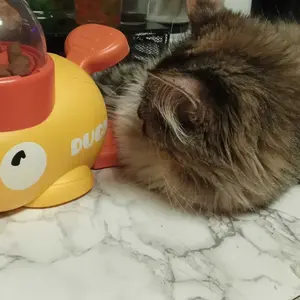 This duck-shaped cat feeder dispenser toy is designed to slow down your cat's eating pace, promoting healthy digestion and preventing bloating. With a simple press on the pedal, it dispenses treats gradually, keeping your cats engaged and satisfied.