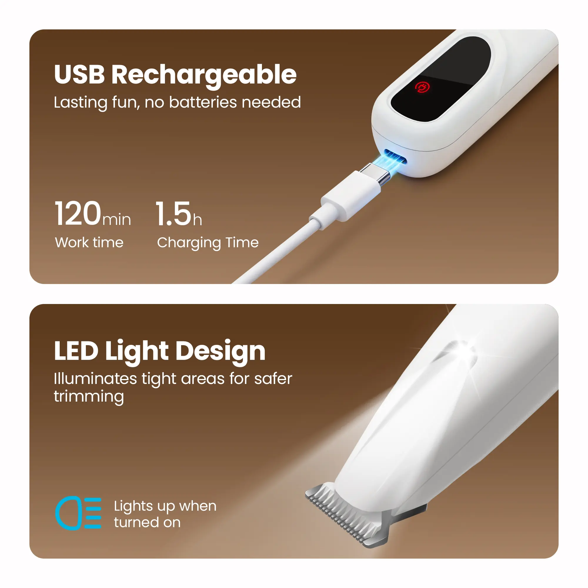 The Type-C charging port works with USB adapters/laptops, and the compact size (small enough for handheld use) makes it a must-have pet grooming supply.
