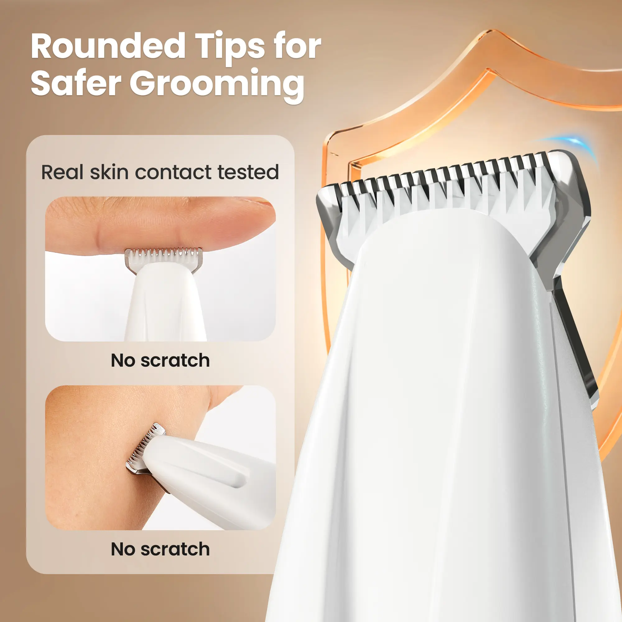 This pet shaver covers all your trimming needs: The stainless steel fixed blade delivers excellent cutting performance, while the 18mm wide rounded ceramic edge enables a smooth shave that won’t scratch your pet's sensitive skin. It’s specially designed for delicate areas like paws (including pads) and ears. And also for trimming hair on the face, toes, butt, and even thick coats – use caution on delicate areas for safe grooming.