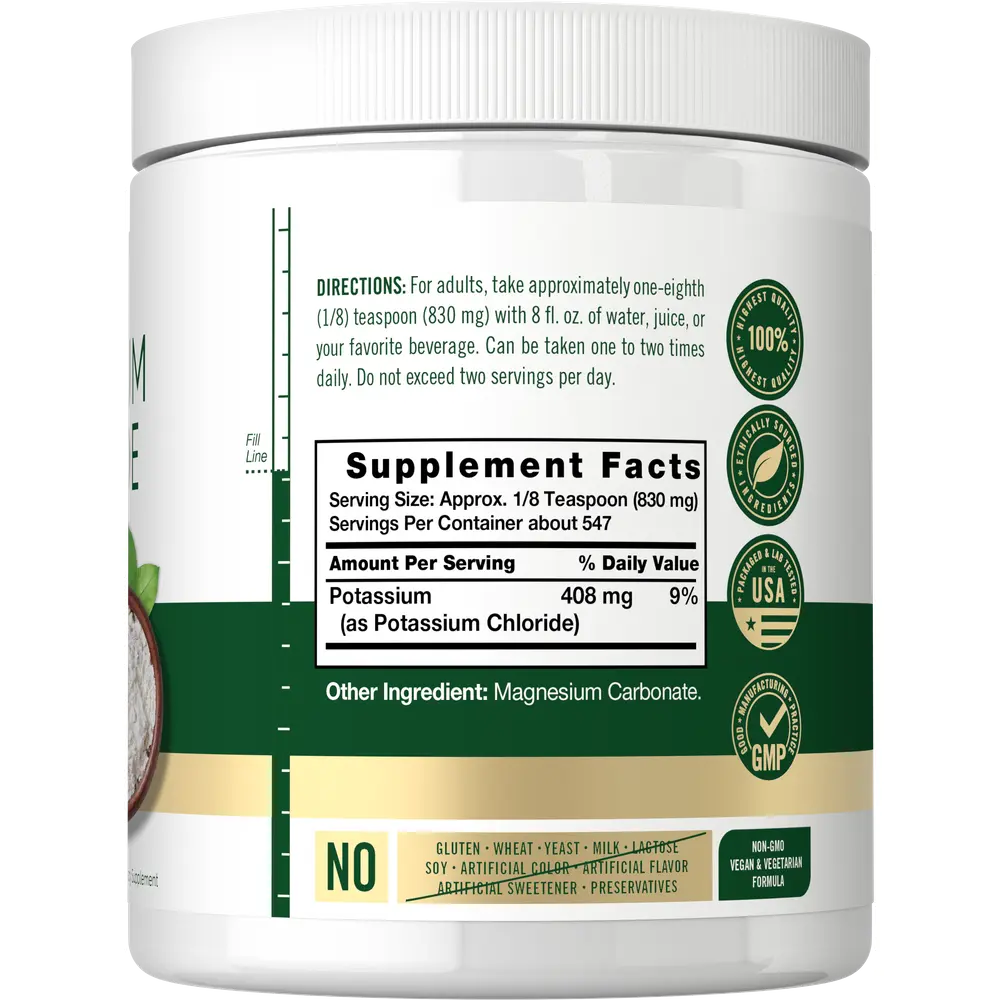 Our expertise in sourcing the purest ingredients combined with advanced technologies makes us proud to deliver premium, honest supplements at the best value. Our Potassium Chloride is a testament to our commitment to excellence, made with powerful ingredients rooted in wellness. Thanks for choosing us in your pursuit of living healthy!