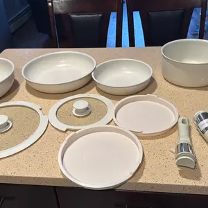 Me encantan no se pega la comida se pueden meter al horno a la dishewasher esta super bonitas aparte su mango se remueve las tapas sirven como tope para meter al refri