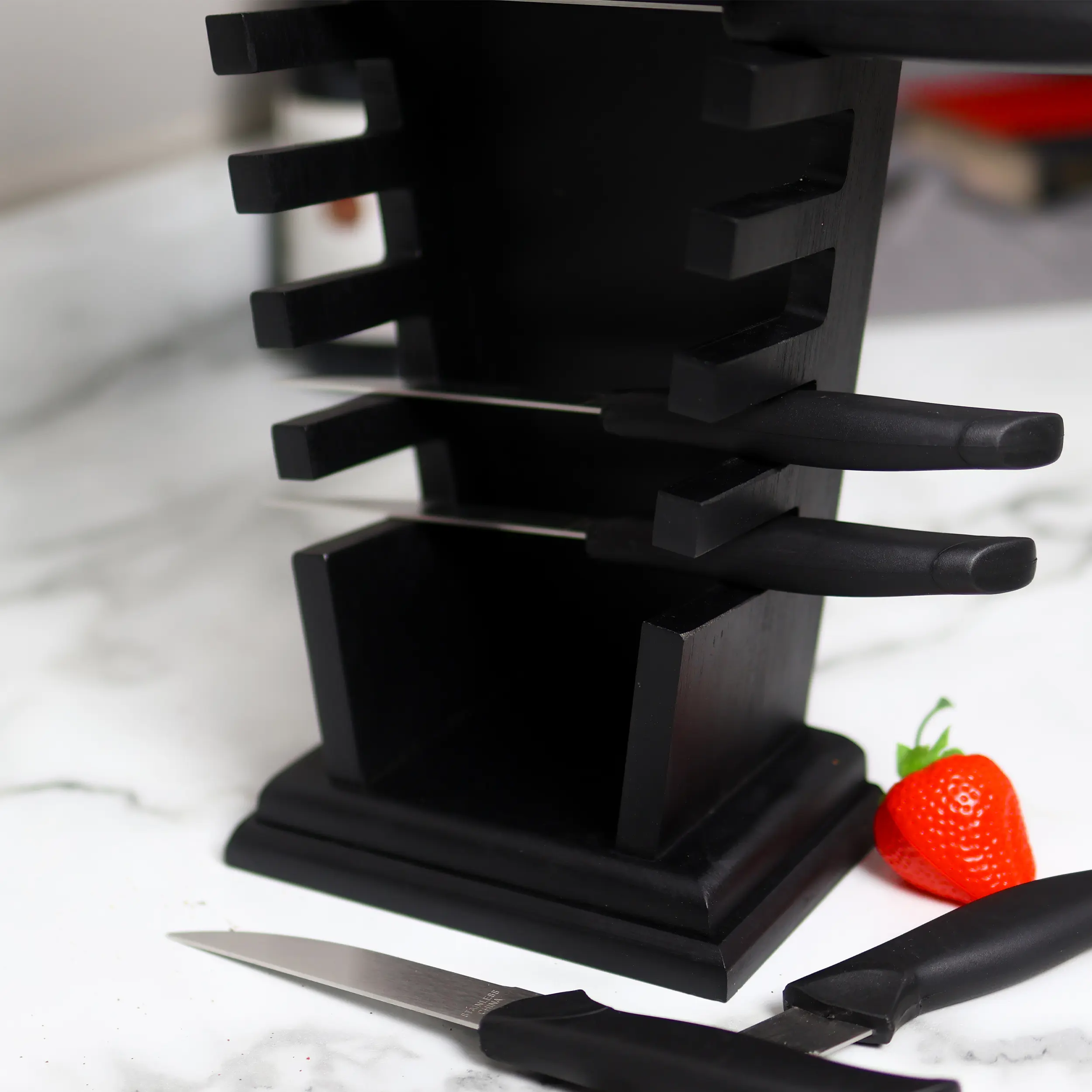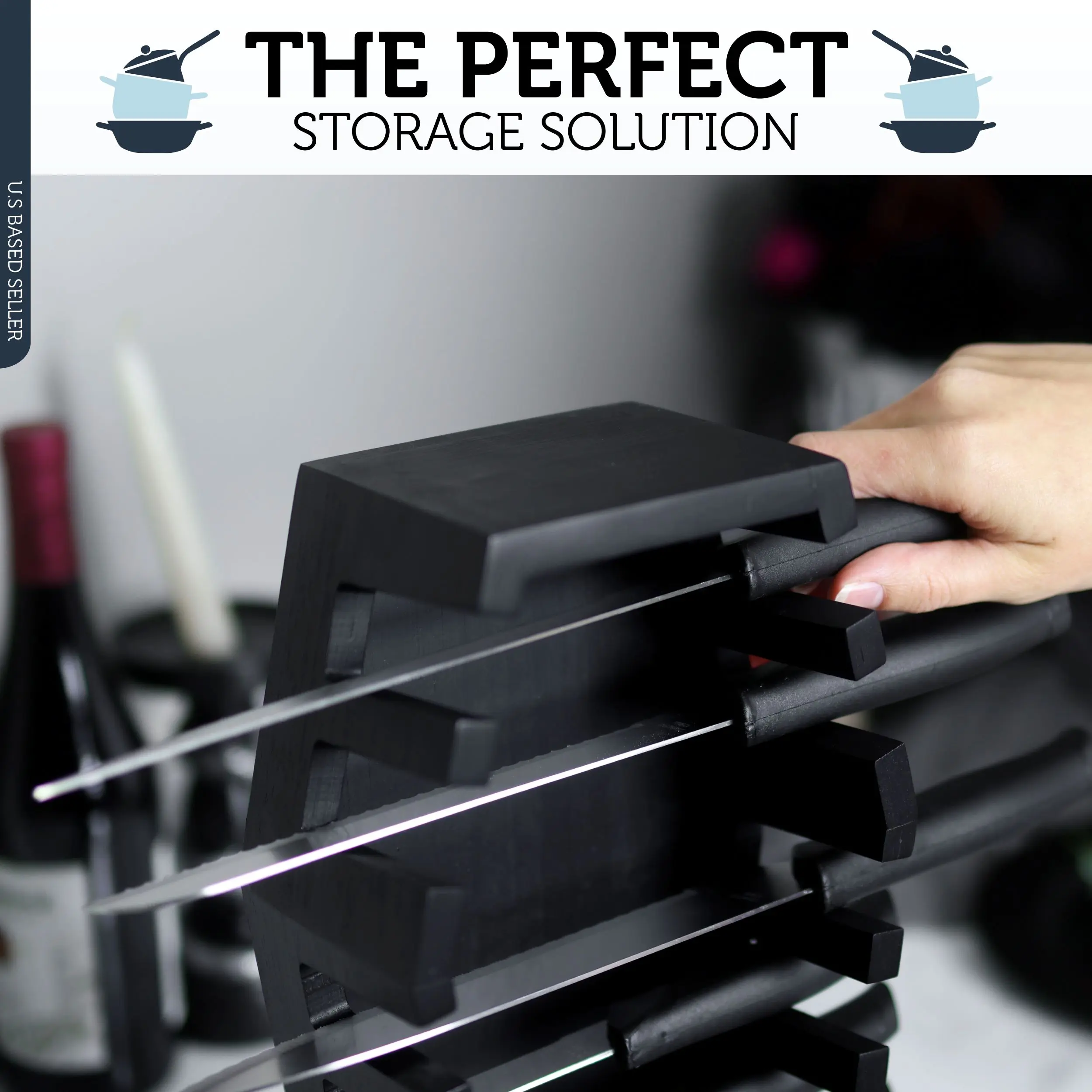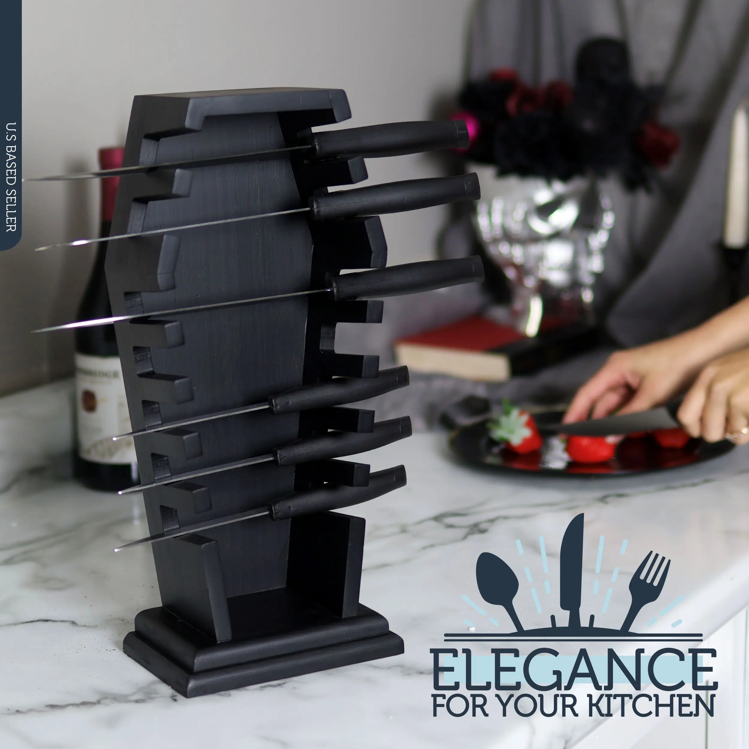 [7 Blade Capacity]: Featuring cradles for up to 7 blades (not included), this black bamboo steak knife holder will match your all-year-round spooky kitchen decor