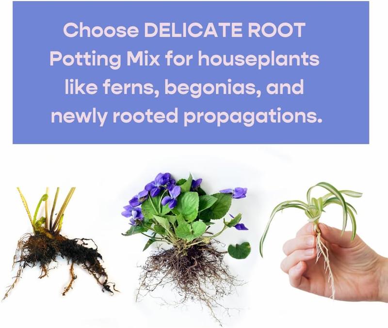 ·GOT PLANTS WITH DELICATE ROOTS? Try our Delicate Root Potting Mix for plants with delicate roots like begonias, ferns, or African violets. Provides more water retention with excellent aeration.