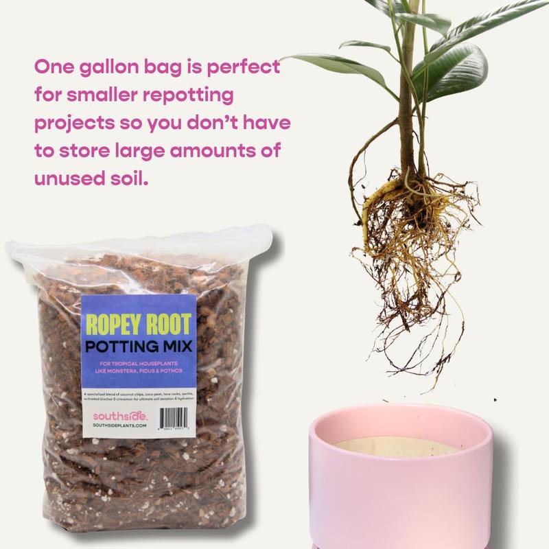 ·ONE GALLON BAG - Ropey Root comes in a premixed, one-gallon bag with an easy zipper closure for storage. Ideal for smaller repotting projects.