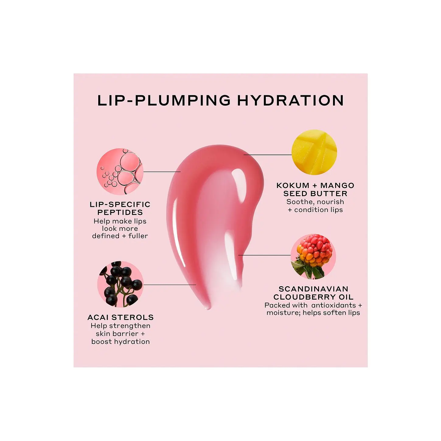 ·Cloudberry Oil provides intense moisture and visibly softens lips Lip-specific Peptides makes lips look more defined and fuller