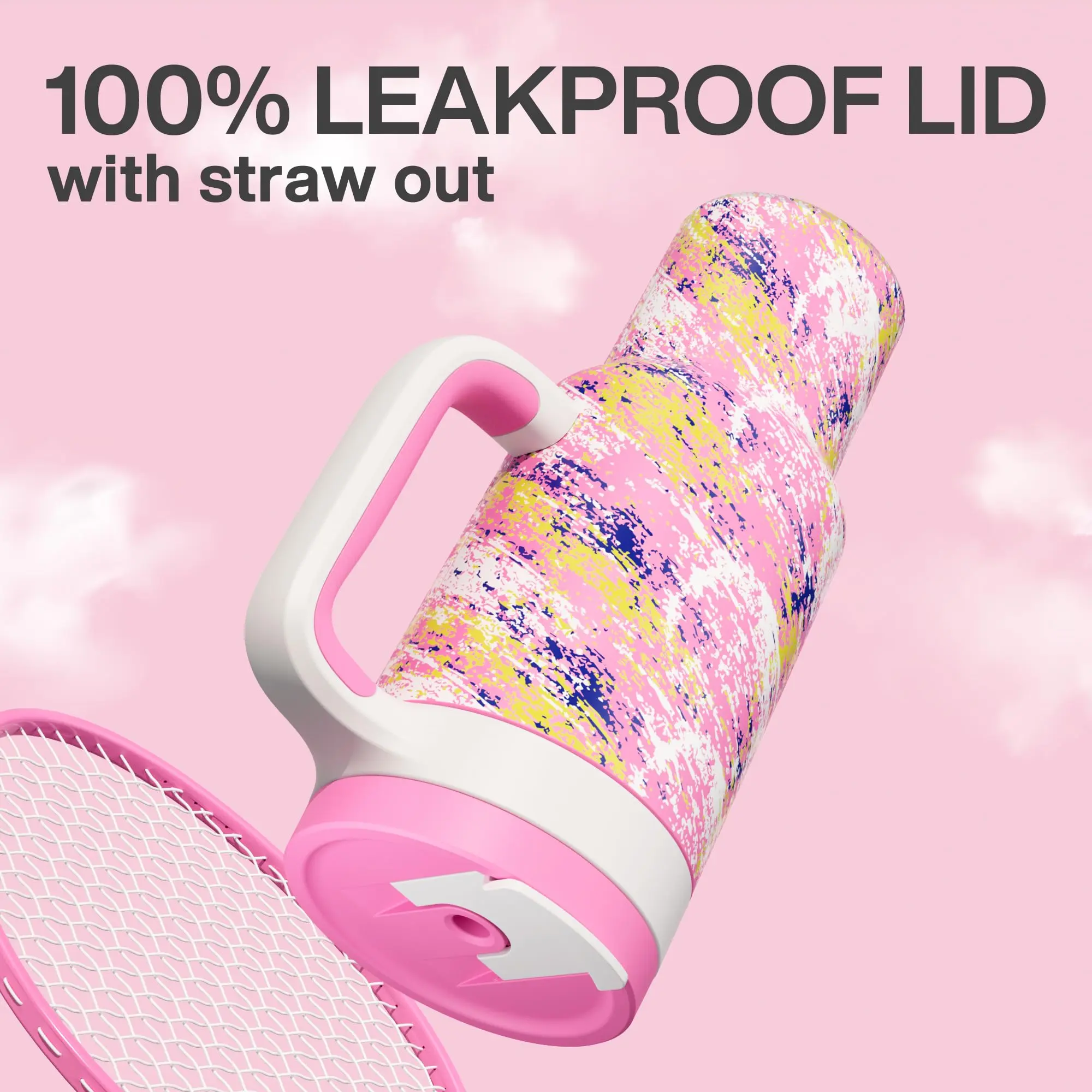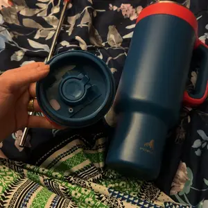 This cup is perfect. It has a straw and open mouth. Its leak proof. Perfect for both men and women.