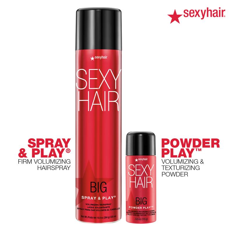 SexyHair Big Powder Play Volumizing & Texturizing Powder and Volumizing Hairspray Bundle| Root Lift for Medium to Coarse Hair | No White Residue| Unisex Hair Volume Powder | Up to 72 Hour Humidity Resistance | All Hair Types | Fragrance-Free & Talc-Free