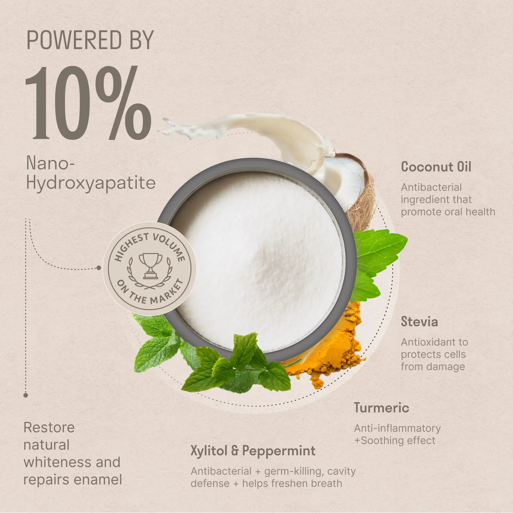 ·Nano-Hydroxyapatite (10%): Biocompatible mineral for enamel repair and reduced sensitivity.