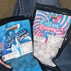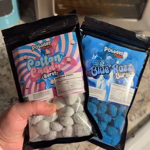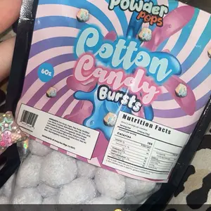 These are addicting!! I was expecting the cotton candy to be sour but they're not, but thats okay cause the sweet ones are sooo good :) (the cotton candy ones are powdered and and it's 👩🏼🍳💋)