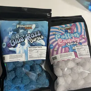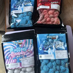 the sour blue raspberry is very good! very sour and taste just like blue raspberry. but the cotton candy i can’t taste cotton candy it’s just powder on gushers and taste like regular gushers. but i like them either way and the price is very good compared to $6 a box at the store for a tiny amount.