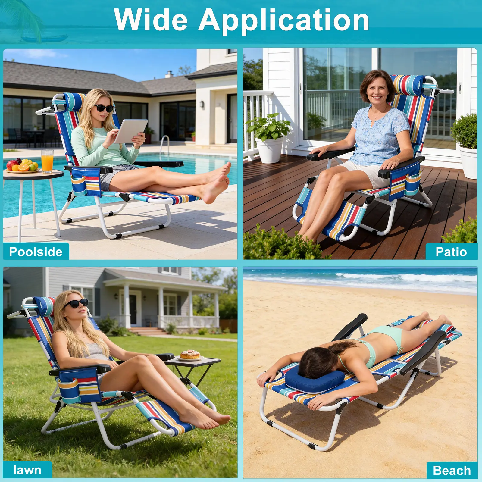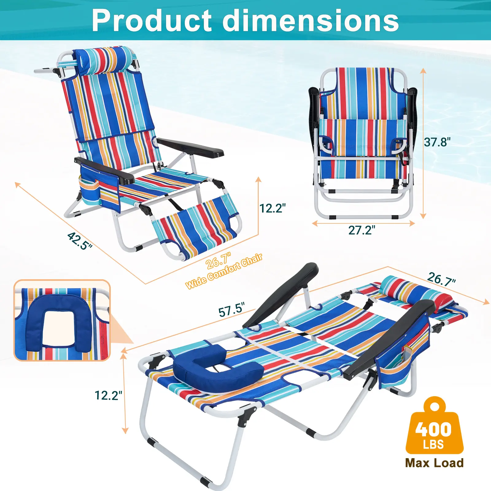 ·FOLDABLE & EASY TO CARRYLightweight folding design for easy transport and storageGreat for Beach, Pool, Patio, Lawn, or HomeRelax anywhere, anytime
