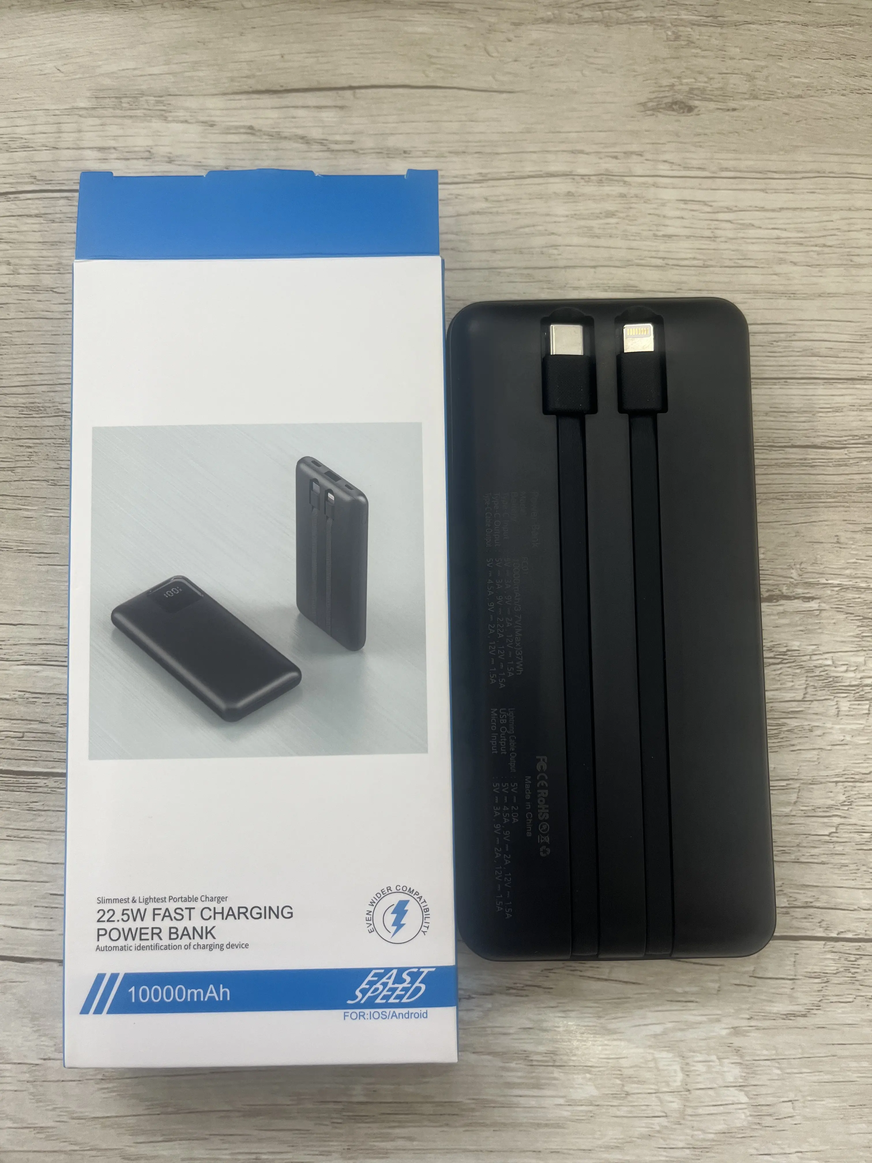 Love the compactness and the fact that it has the two charging cables attached for all phone types and the ports. The only thing is it drains a little quick and charging the charger takes a while but it serves the purpose. The size/thickness is like a cellphone not big/heavy like other I replaced.