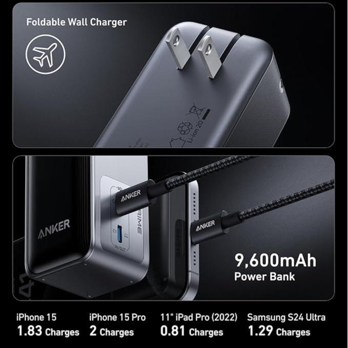 ·What You Get: Anker Prime Power Bank (9.6K, 65W, Fusion), Anker USB-C to USB-C Cable (3.3 ft, 100W, Briaded), travel pouch, welcome guide, 24-month warranty, and our friendly customer service.