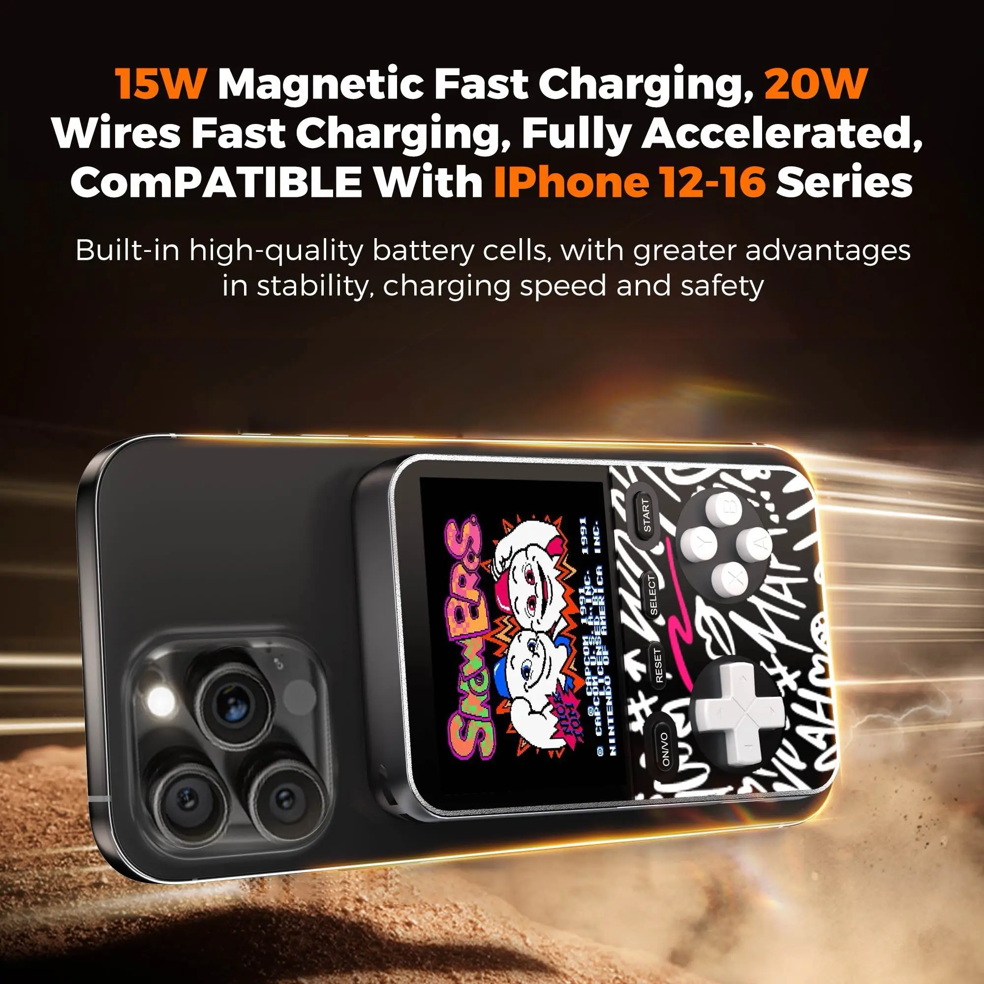 Ever wish your power bank could do more than just charge? Meet the Miro Multifunctional Power Bank Gaming Console, your new travel buddy that keeps your phone powered and your boredom at bay. With a 5000mAh battery, it offers multiple full charges for your smartphone, so low battery anxiety is a thing of the past. But here’s the twist—it features a built-in mini gaming console loaded with classic 16-bit retro games, perfect for killing time during commutes or breaks. Thanks to 15W wireless fast charging, you can juice up your phone cable-free by simply placing it on top. Plus, you can play games while charging the power bank itself, ensuring endless fun and power. Its compact, lightweight design fits comfortably in your hand or bag, making it ideal for on-the-go entertainment and power needs. Inside the box, you get the power bank gaming console with built-in lithium-ion battery and USB Type-C input for recharging. Ready to power up and play? Grab yours and turn downtime into playtime wherever you are!