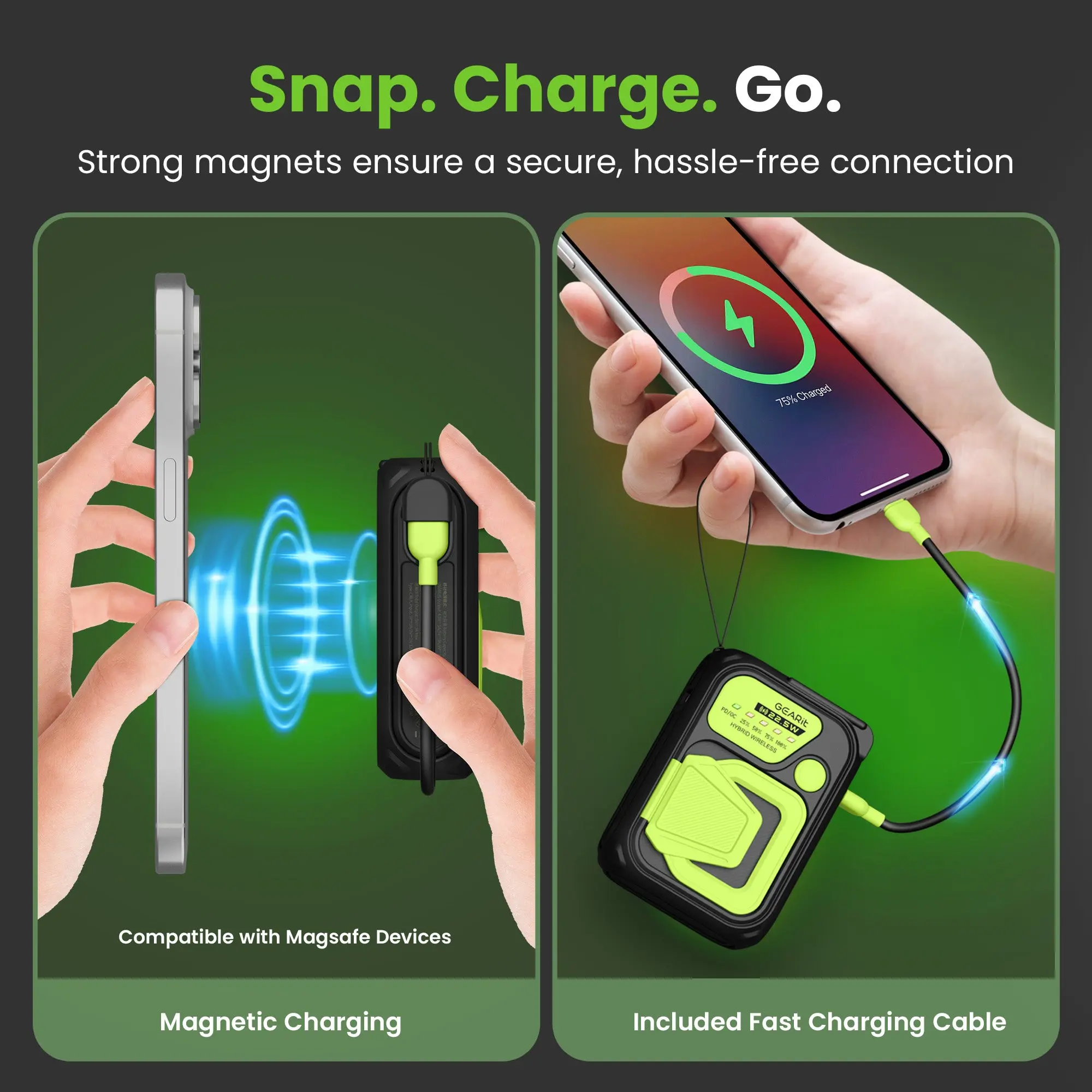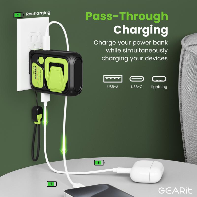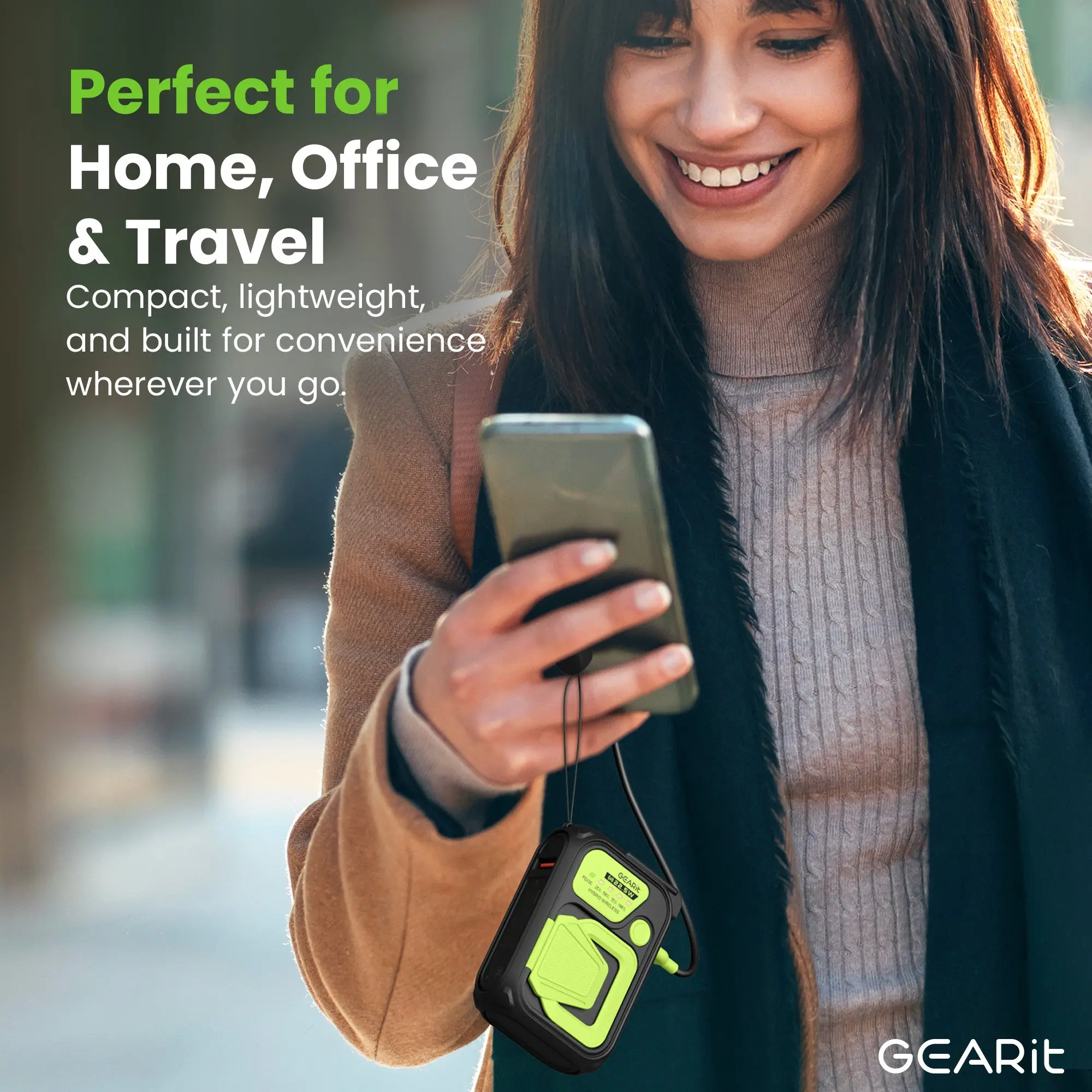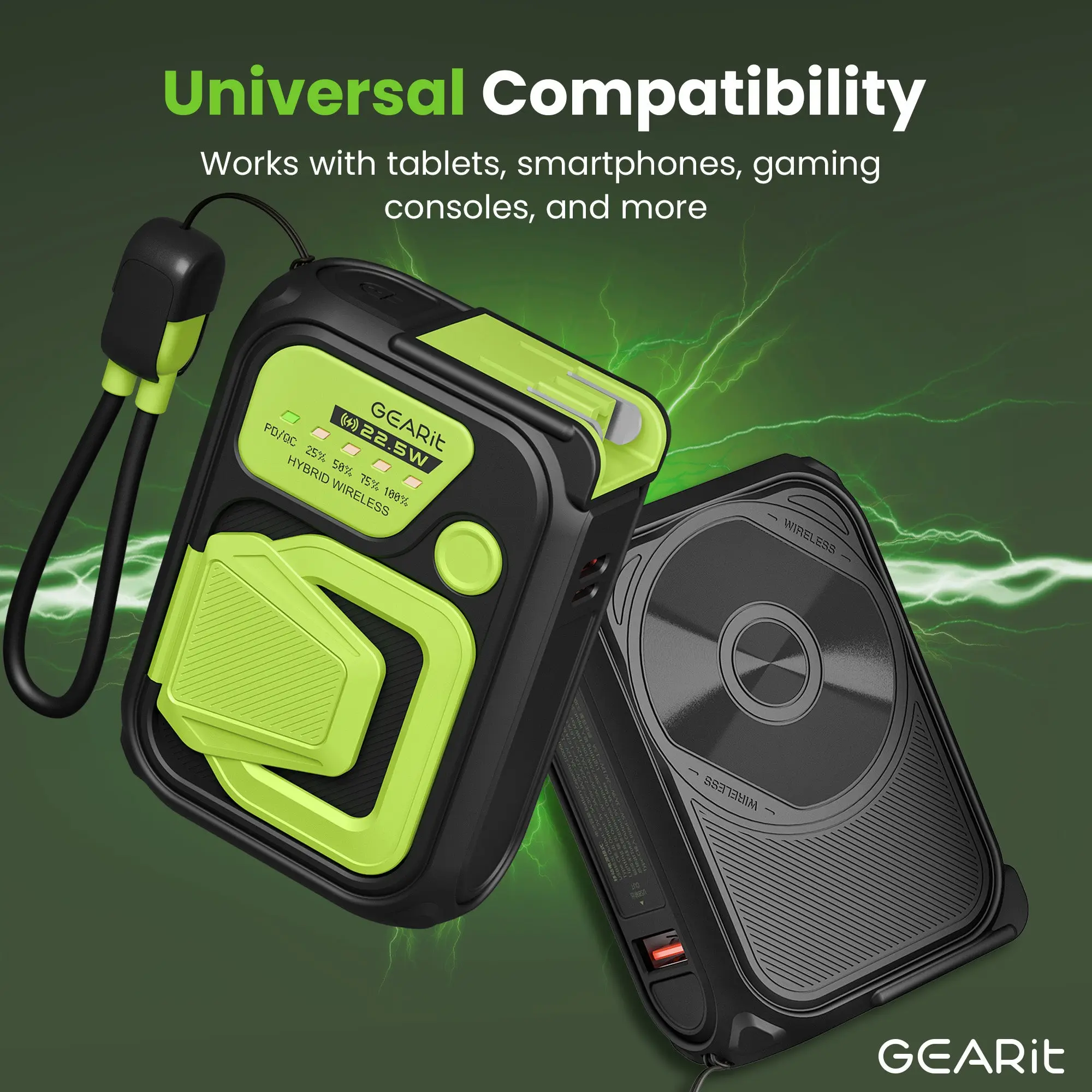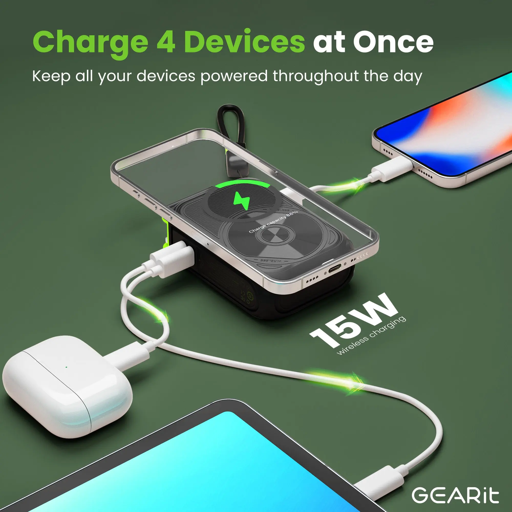 Ever find yourself juggling cords and scrambling for outlets while traveling? The GEARit Lifestyle Series 10,000mAh 3-in-1 Hybrid Power Bank is here to simplify your charging game. With built-in USB-C and Lightning cables that cleverly double as a carrying strap, plus MagSafe wireless charging for your iPhone, you can ditch the cable clutter. This compact powerhouse offers 22.5W fast charging and dual USB ports, letting you juice up your earbuds, tablet, phone, and more all at once. The LED display keeps you in the know about your remaining power, so no surprises on the road. Plus, its advanced safety features protect your devices from overcharging or overheating, giving you peace of mind. Inside the box, you get the power bank with built-in cables ready to go. Whether you're out and about or powering through a busy day, this magnetic portable charger keeps your devices charged and your life hassle-free. Ready to travel light and stay connected? Grab the GEARit power bank and never miss a beat!