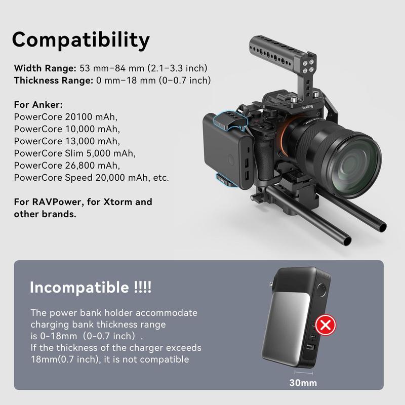 ·【FOR POWER BANK】 SMALLRIG Holder BUB2336 is designed for portable power banks, it could attaches a power bank to the camera rig when a sustainable charging solution is required.