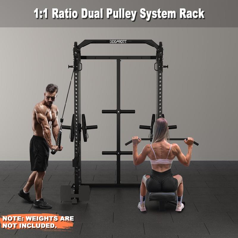 Dual Pulley System Power Rack- Independent 1:1 Ratio: Each side supports up to 400 LBS, ensuring you can train with the weight you load.- Value for Money: Achieve the same training effect with half the weight compared to a 2:1 ratio power cage.