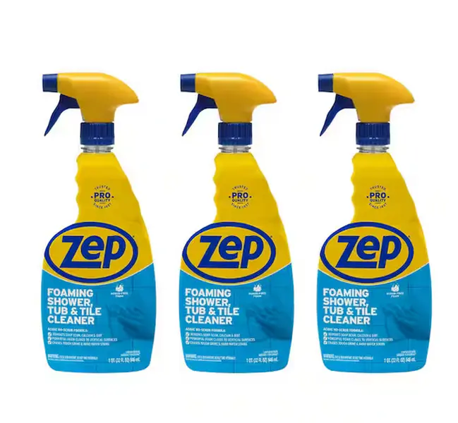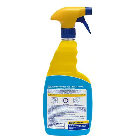 5. ZEP 32 oz. Power Foam Tub and Tile Cleaner, No-Scrub Bathroom Cleaner, Soap Scum Remover, Hard Water Stain Cleaner, Foaming Tile Cleaner, Limescale Remover, Acidic Foam Cleaner, Morning Rain Scent.