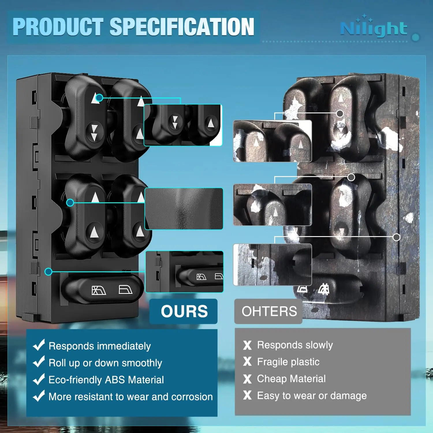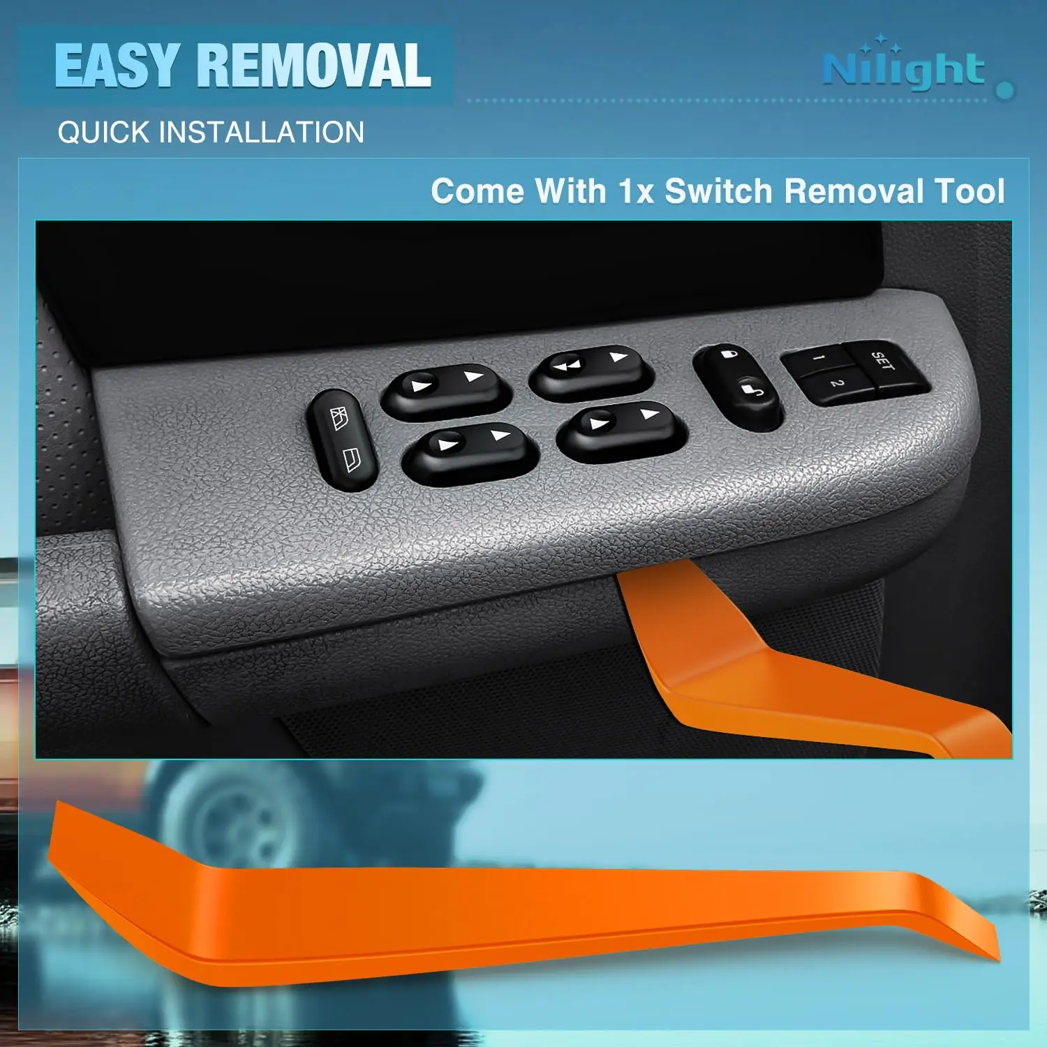 ·Easy Installation: Come with a switch removal tool, easy to replace original factory window switch, plug and play. Nilight power window switch fits, functions and matches the appearance of the original switch for a perfect replacement