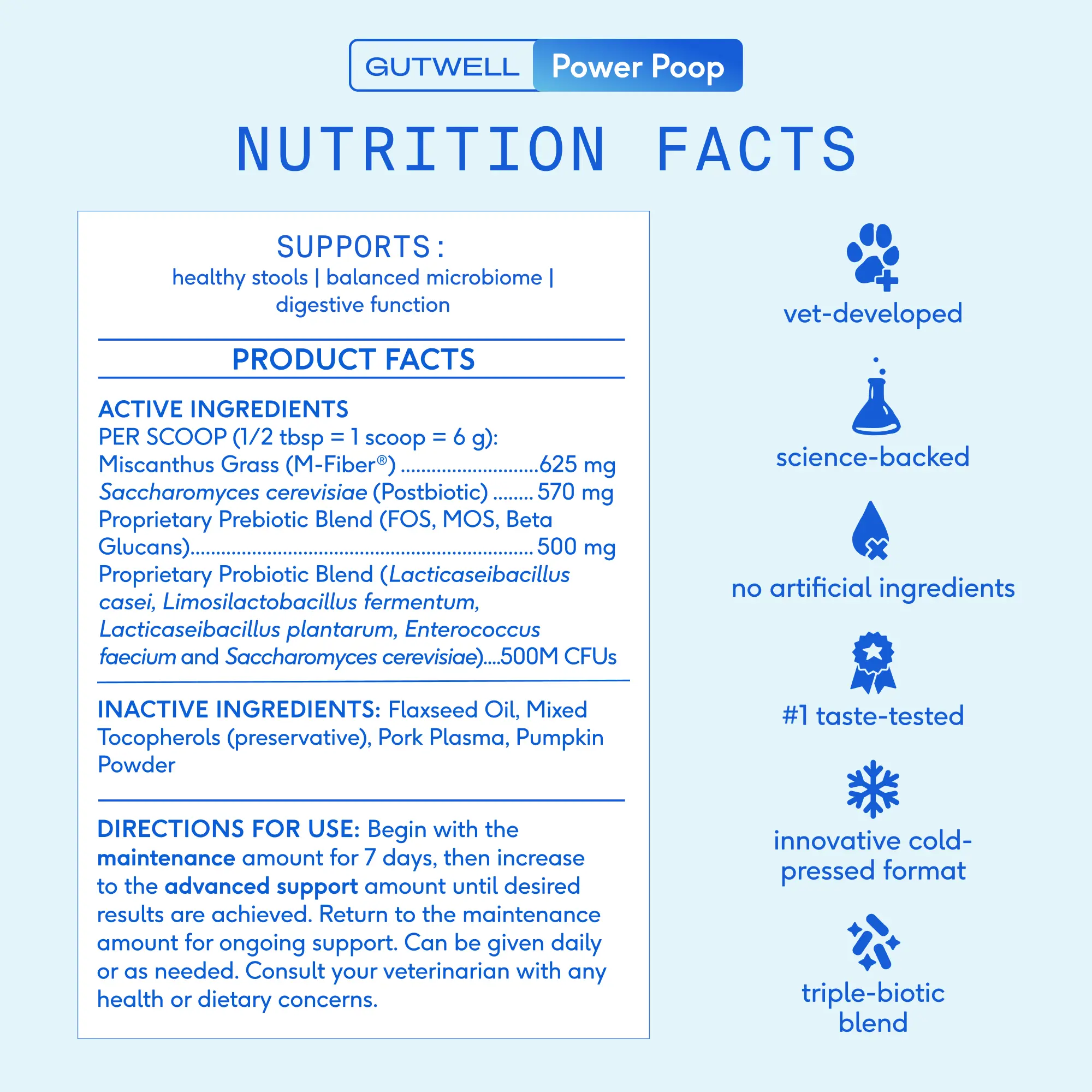 My pup was having some G.I. track issues. We started using power poop twice daily until he regulated. It’s been so helpful. We will continue to use it!